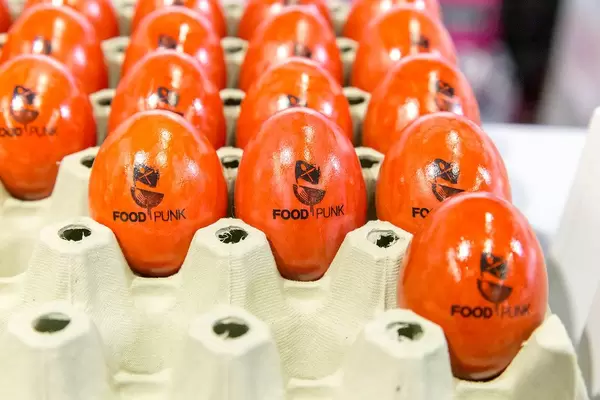 Orange eggs in egg cup offered by FoodPunk, an app for special diets at Fibo Cologne