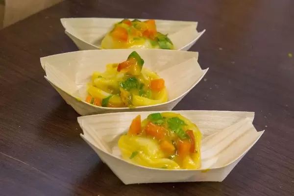 Hello Fresh Bananenpfannkuchen Mischung in Edestahlschüssel - Bananenpüree, Mehl, Milch, Backpulver, Petersilie, Chili