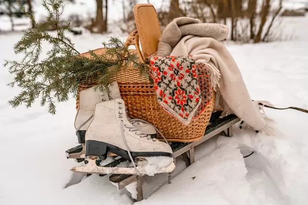 Sipping Tea On MEtal Cup Wintertime Outdoors