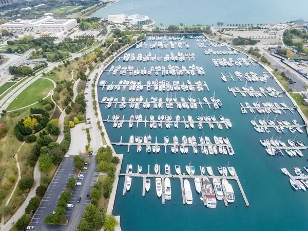 Aerial photography: Marina, The Field Museum, Shedd Aquarium, Northerly Island
