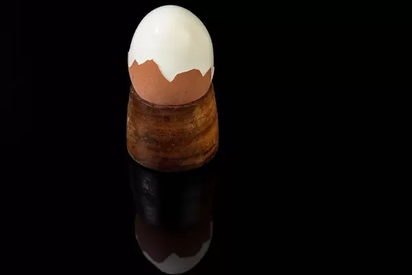 Hard Boiled Egg above black reflective background (Flip 2019)