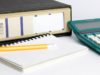 Buchhaltung Konzept - Ein Taschenrechner mit einem Notizheft, einem Bleistift und einem AktenordnerDas Bild Buchhaltung Konzept - Ein Taschenrechner mit…