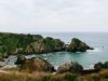 Leuchtturm und angrenzende Gebäude bei Dämmerung in Carrapateira, PortugalDas Bild Leuchtturm und angrenzende Gebäude bei Dämmerung in Carrapateira, Portugal von…