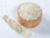 Mit einigen Produkten gefüllter Einkaufswagen steht in Supermarktgang zwischen RegalenDas Bild Mit einigen Produkten gefüllter Einkaufswagen steht in Supermarktgang zwischen…