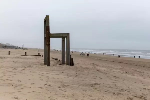 Giant wooden chair stands on coast of Zandvoort aan Zee, Netherlands