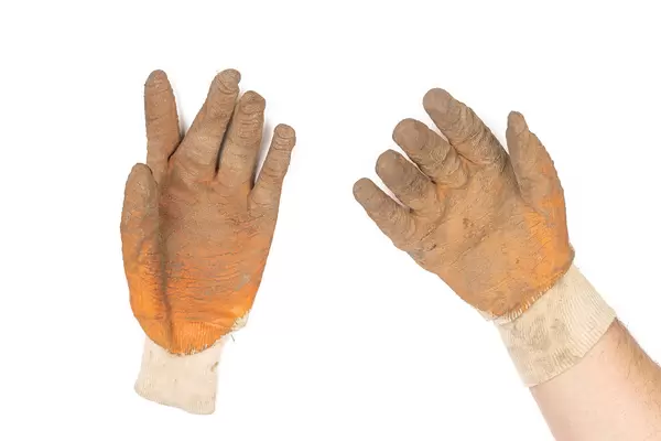 Work Gloves on the hand isolated above white background