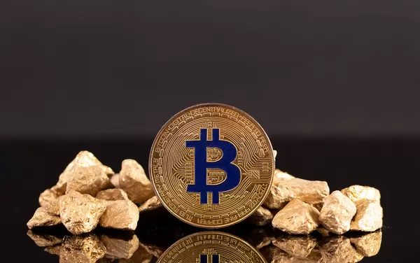 Golden Bitcoin and gold nuggets with Gold vs Bitcoin text