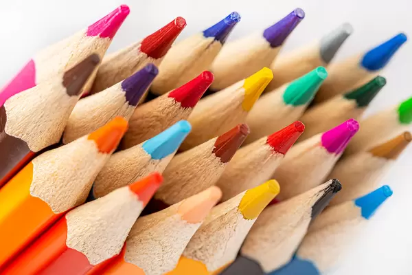 Close up of color pencils on white background