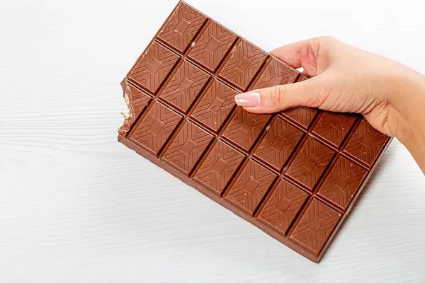 Eaten large milk chocolate in a woman's hand (Flip 2019)