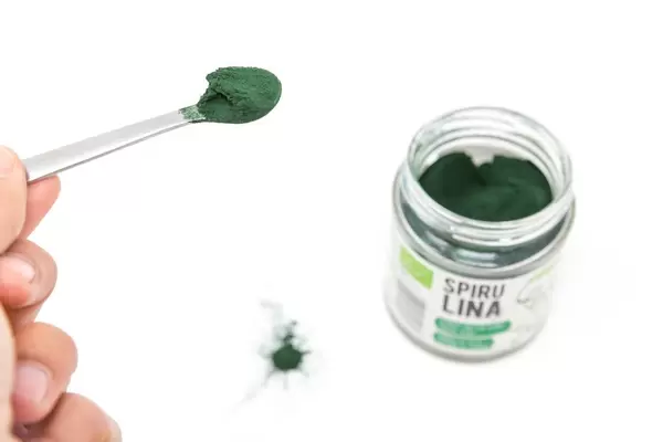 Spiraluna-Pulver von Mama Nature, mit Chlorophyll und Eiweiß aus blaugrünen Meeresalgen hergestellt, für gesunde Smoothies und Joghurts