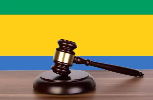 Wooden gavel and flag of Gabon