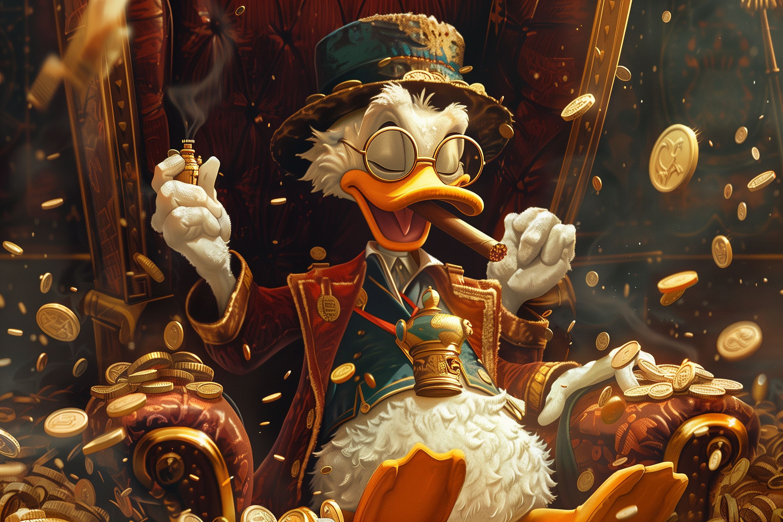 Dieses digitale Foto zeigt einen karikaturesken Entendarsteller, der an Dagobert Duck aus den Disney-Trickfilmen erinnert. Die Figur trägt einen modischen Zylinderhut, eine Brille und eine prachtvolle Uniform. Sie ist umgeben von goldenen Münzen, die in der Luft schweben, als würde der Charakter mit seinem Reichtum prahlen. Die Illustration hat einen fantasievollen, trickfilmhaften Stil und einen besonderen Vintage-Look, der sie für eine Vielzahl von Einsatzzwecken geeignet macht - vom Blogbeitrag bis hin zu Werbematerialien. Dieses hochauflösende Stockfoto mit einer Creative-Commons-Lizenz steht Ihnen kostenlos zur Verfügung.
