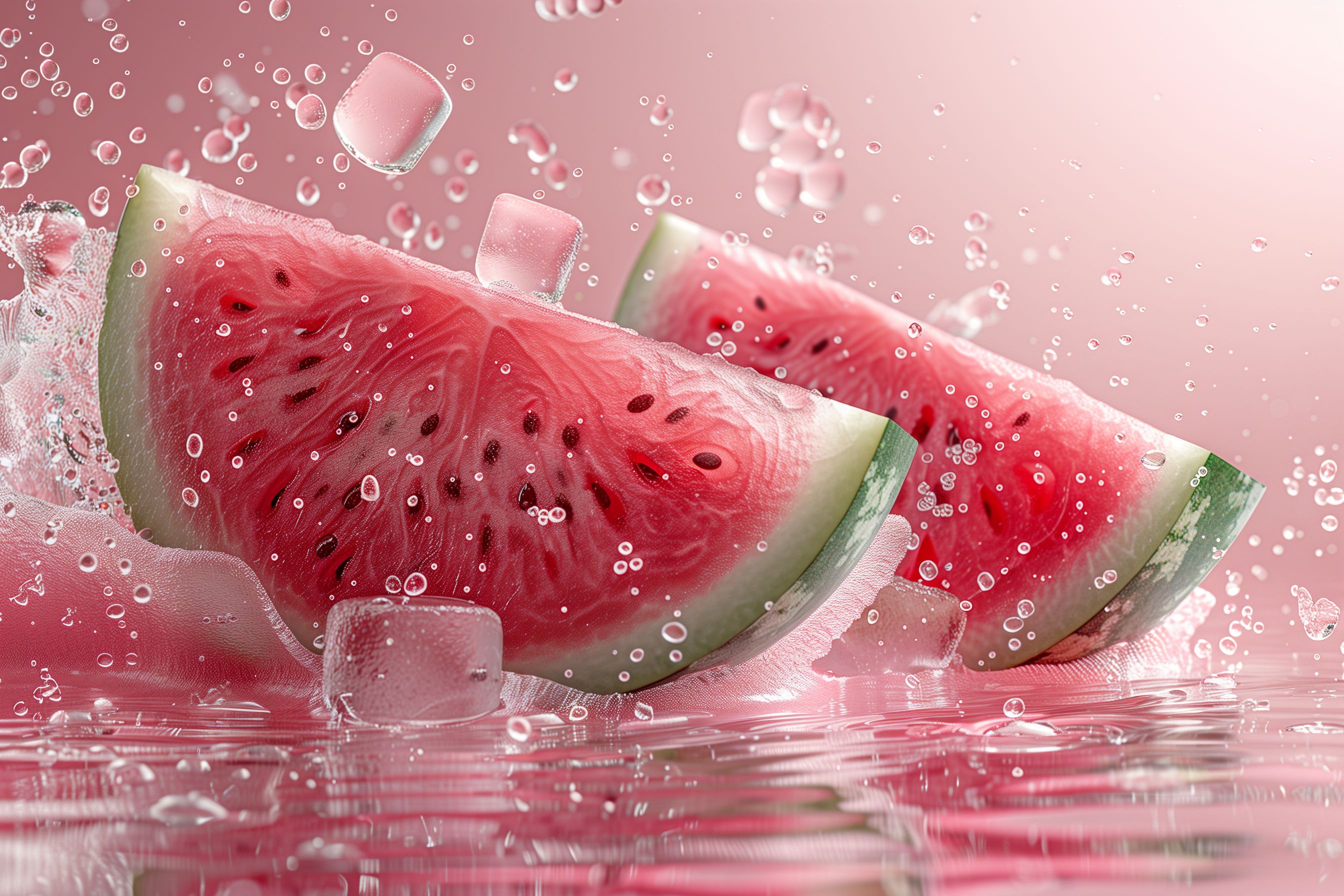 Dieses köstliche Foto zeigt frische, saftige Scheiben einer roten Wassermelone, die in einem Wasserbad mit Eiswürfeln schwimmen. Die Melonenstücke sind mit kleinen Wassertropfen bedeckt, die das Bild erfrischend und lebendig erscheinen lassen. Die intensive rote Farbe der Frucht kontrastiert wunderschön mit dem hellen Hintergrund und den klaren Eiswürfeln. Dieses hochauflösende Stockfoto ist ideal für Sommerrezepte, Getränkewerbung, Ernährungsblogs oder andere Projekte, die eine erfrischende, gesunde und sommerliche Optik benötigen. Es steht unter einer Creative-Commons-Lizenz zur freien Verwendung zur Verfügung.