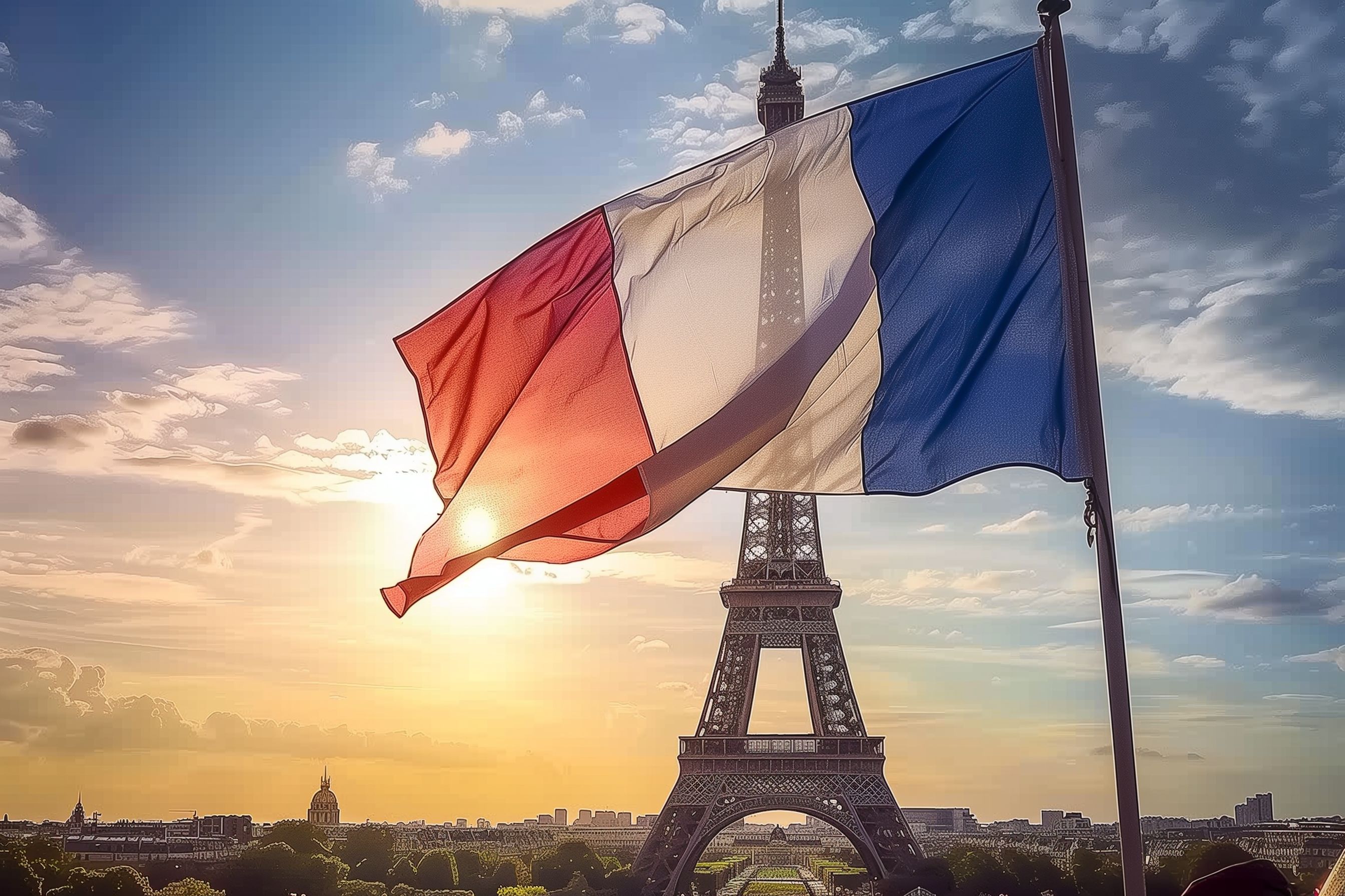 Dieses eindrucksvolle Foto zeigt die französische Nationalflagge, die majestätisch vor dem Eiffelturm in Paris weht. Der Eiffelturm, eines der berühmtesten Wahrzeichen der Welt, ist im Hintergrund zu sehen, umgeben von einem atemberaubenden Himmel mit Wolken, die vom Sonnenlicht in warmen Farben getaucht werden. Die Flagge, bestehend aus den Farben Blau, Weiß und Rot, ist ein starkes Symbol für Frankreich und seine Kultur. Dieses Foto eignet sich hervorragend als Hintergrund für Blogs, Newsletter, Social-Media-Posts oder Werbematerialien, die einen patriotischen oder reiseorientierten Charakter haben. Das hochauflösende, kostenlose Stockfoto steht unter einer Creative-Commons-Lizenz zur Verfügung.