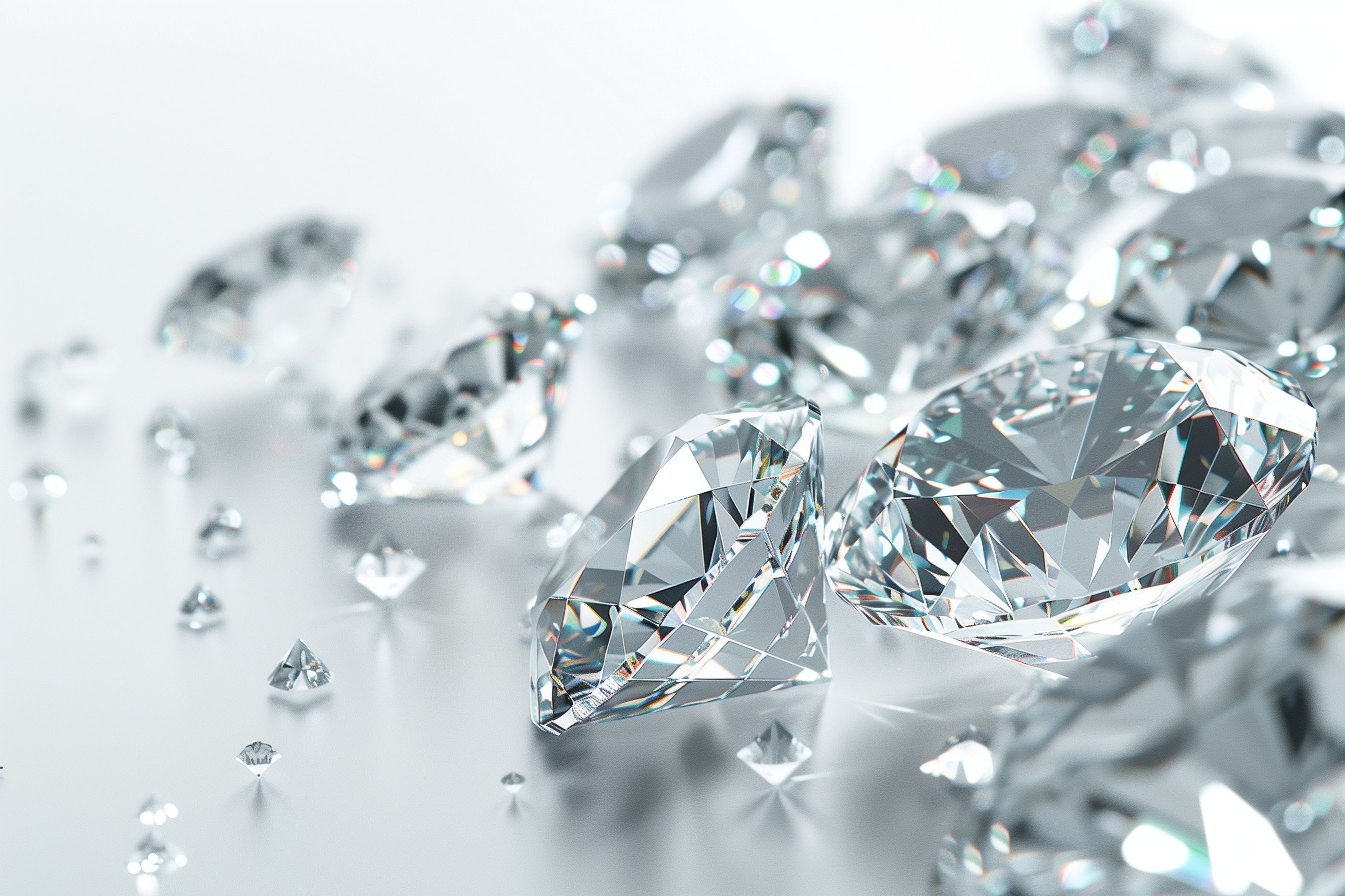 Dieses Bild zeigt eine faszinierende Makroaufnahme von mehreren funkelnden Diamanten. Die Edelsteine sind in verschiedenen Winkeln angeordnet und reflektieren das Licht auf eine brillante Art und Weise. Die Schärfe und Detailtiefe dieser Aufnahme lassen die Steine wie kostbare Juwelen erscheinen. Dieses Foto eignet sich hervorragend als Hintergrundbild, Grafikelement oder Titelbild für Themen rund um Luxus, Schmuckdesign oder Hochzeiten. Als hochwertiges Stockfoto in hoher Auflösung und unter Creative-Commons-Lizenz ist es frei nutzbar.