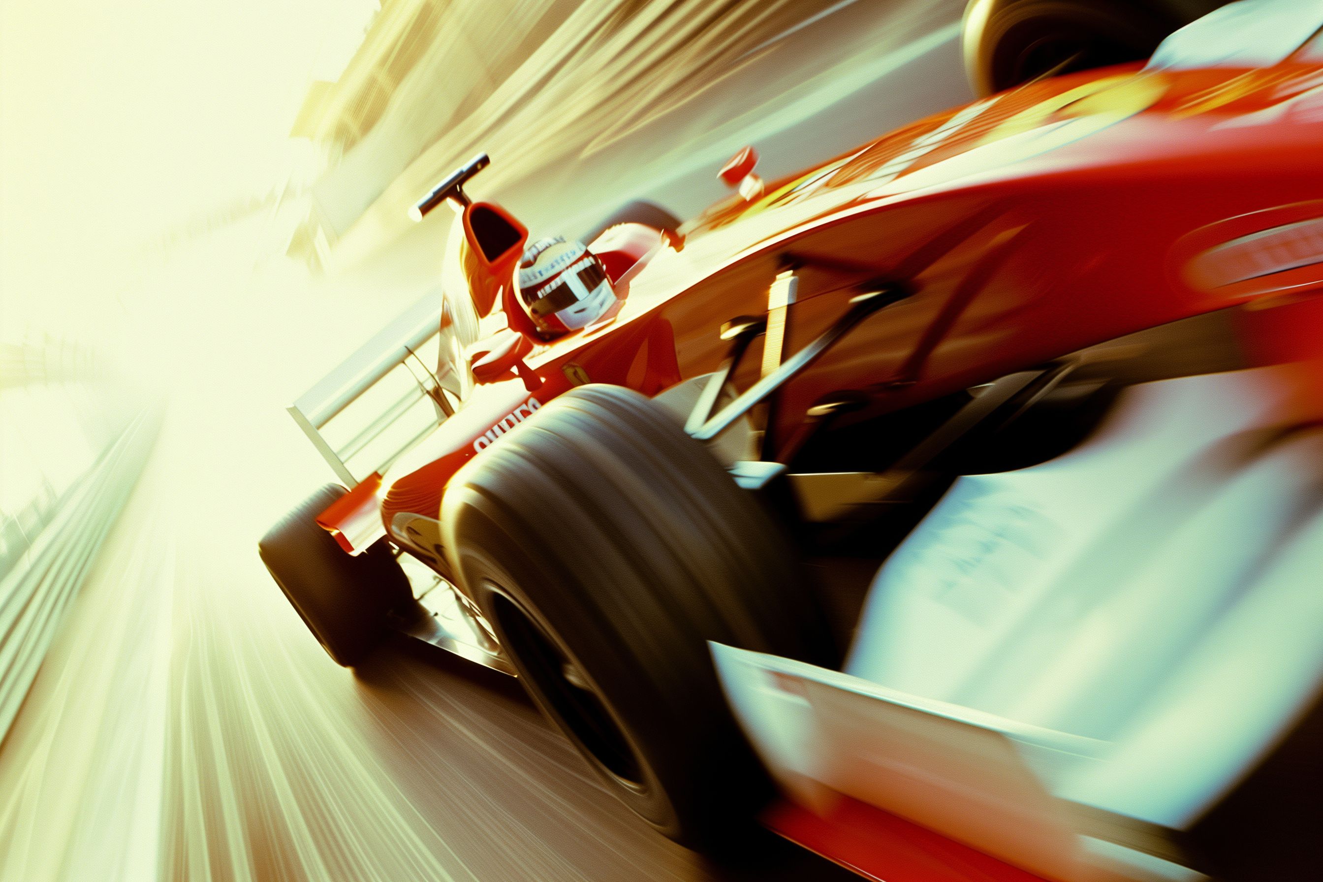 Das Bild zeigt einen Formel-1-Rennwagen in rasanter Kurvenfahrt auf einer Rennstrecke. Der Wagen ist in einem intensiven, rötlich-orangen Farbton gehalten und scheint mit hoher Geschwindigkeit durch die Kurve zu schießen, was durch die starke Bewegungsunschärfe zum Ausdruck kommt. Das Bild vermittelt Dynamik, Energie und Adrenalin, die typisch für den Motorsport sind. Dieses hochauflösende Stockfoto eignet sich hervorragend für Blogs, Newsletter, Social-Media-Beiträge und Werbematerialien zum Thema Rennsport, Formel 1 oder Motorsport allgemein. Es steht unter einer Creative-Commons-Lizenz und kann kostenlos verwendet werden.