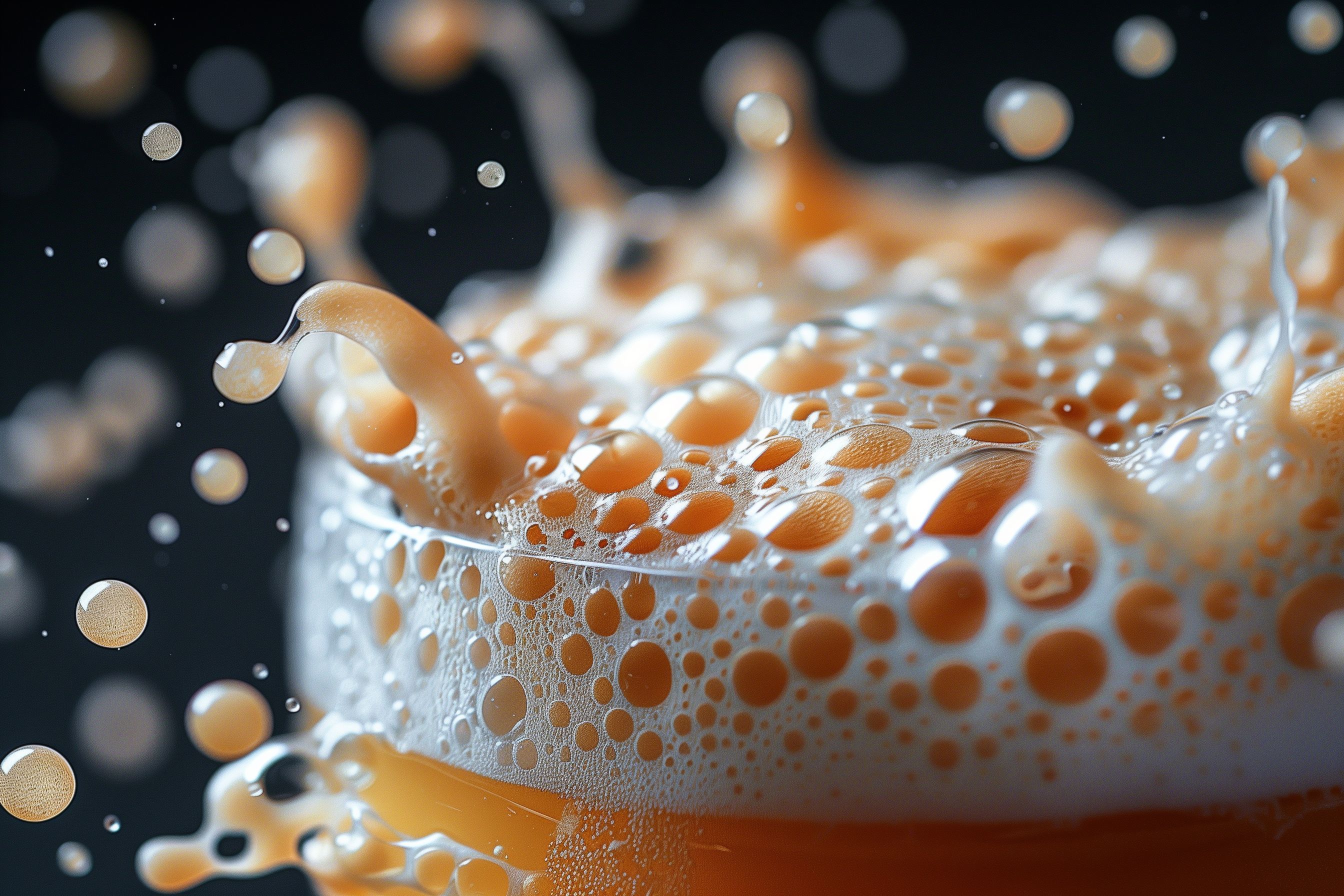 Dieses Foto zeigt eine detaillierte Nahaufnahme des feinperligen Schaums auf einem dunklen Hintergrund. Die glänzenden, transparenten Blasen und der kontrastreiche Farbverlauf vom Goldgelb des Bieres zum Weiß des Schaums machen dieses Bild zu einem idealen Motiv für Hintergrundbilder, Produktfotos oder grafische Elemente in Blogs, Newslettern oder Social-Media-Beiträgen. Das hochauflösende Foto steht als kostenloses Stockfoto unter der Creative-Commons-Lizenz zur Verfügung.