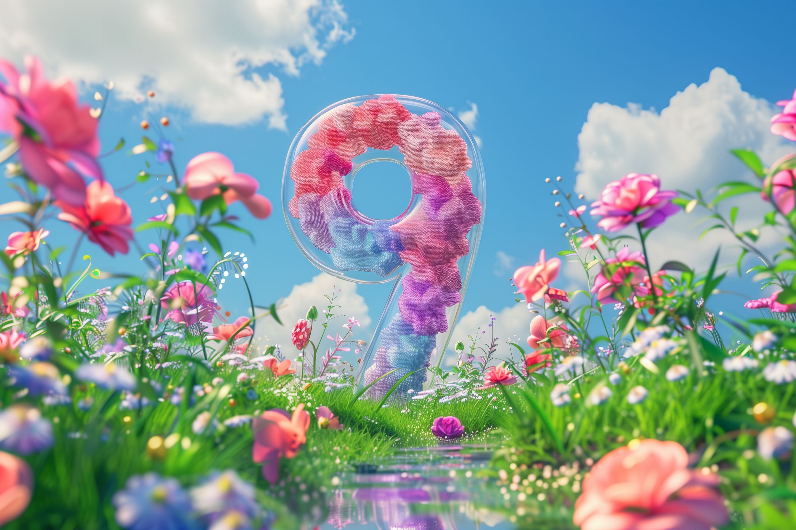 Dieses stimmungsvolle Stockfoto zeigt eine bunte Nummer Neun, die inmitten einer üppig blühenden Frühlingswiese platziert ist. Die große, transparent wirkende Ziffer ist von zarten, rosa und lila Blüten umrahmt und scheint aus ihnen emporzuwachsen. Der strahlend blaue Himmel mit flauschigen Wolken bildet einen perfekten Hintergrund für das farbenfrohe Arrangement. Dieses kreative Motiv eignet sich hervorragend als Titelbild oder Werbefoto für Frühlings- und Naturthemen, etwa in Blogs, Newslettern oder auf Social-Media-Kanälen. Das hochauflösende Bild steht unter einer Creative-Commons-Lizenz und ist kostenlos für private sowie kommerzielle Zwecke nutzbar.