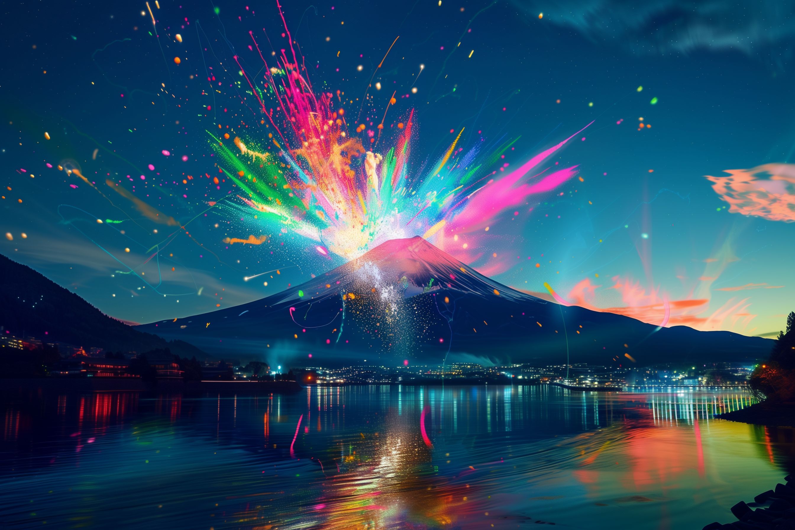 Dieses faszinierende Foto zeigt ein beeindruckendes Feuerwerk-Spektakel am Fuji-Vulkan in Japan. In einer atemberaubenden Nachtlandschaft erleuchten bunte Feuerwerkskörper den Himmel über dem See und dem malerischen Bergmassiv. Die Explosion der Farben spiegelt sich auf der ruhigen Wasseroberfläche und erzeugt eine magische, fast surreale Atmosphäre. Dieses kostenlose Stockfoto in hoher Auflösung unter Creative-Commons-Lizenz eignet sich hervorragend für die Verwendung in Blogs, Newslettern, Social-Media-Kanälen oder Werbematerialien, um Stimmung und Dynamik zu transportieren.