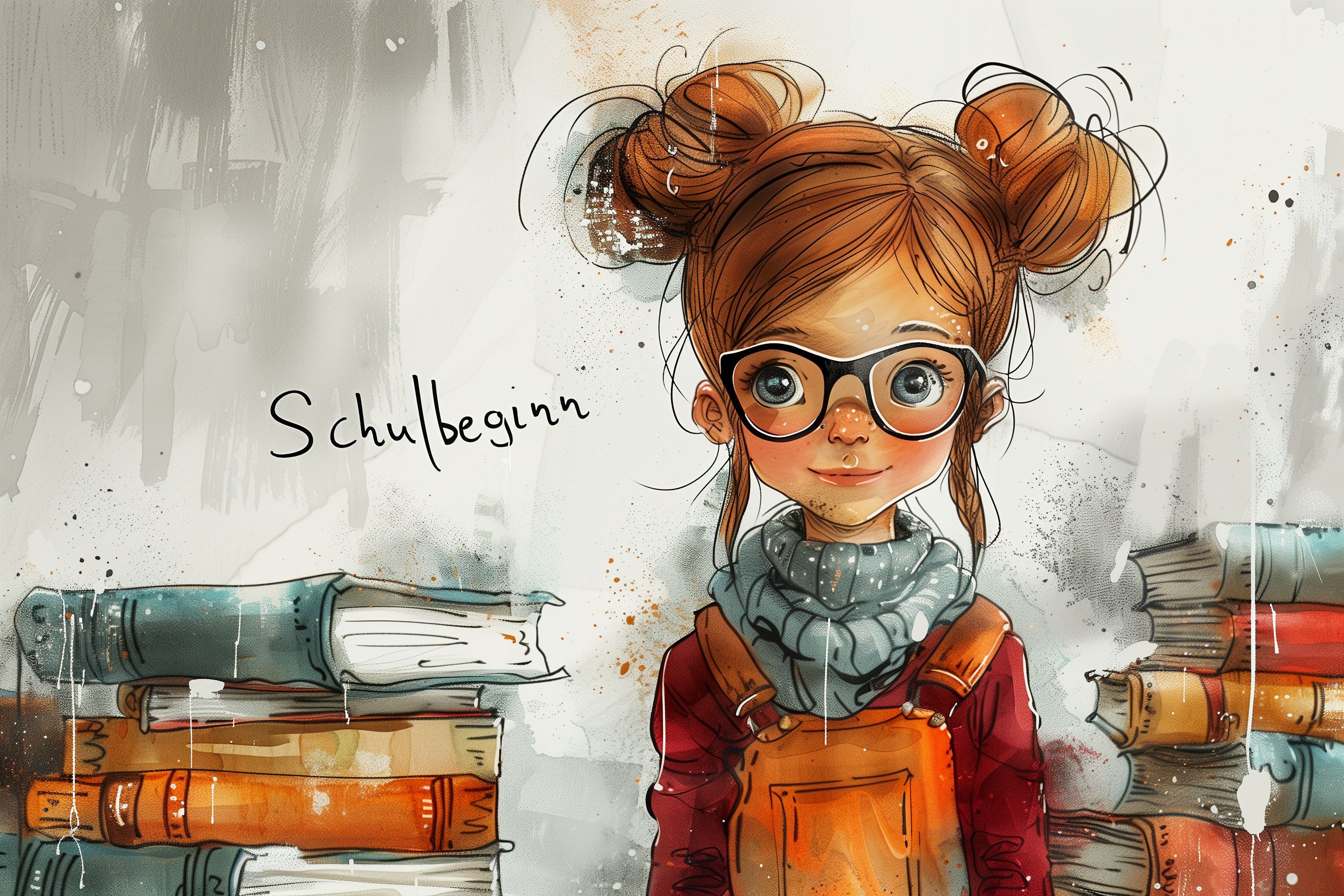 Dieses farbenfrohe Bild zeigt ein trendiges Mädchen mit Brille und Zöpfen, das vor einem Hintergrund aus Bücherstapeln und Malutensilien steht. Die Illustration vermittelt eine kreative, fröhliche und inspirierende Stimmung rund um den Schulbeginn. Das Motiv eignet sich perfekt für den Einsatz in Blogs, Newslettern, Social-Media-Postings oder Werbematerialien zum Thema Bildung, Lernen und Kreativität. Mit seiner hohen Auflösung und Creative-Commons-Lizenz ist dieses kostenlose Stockfoto ideal für vielfältige digitale Projekte.