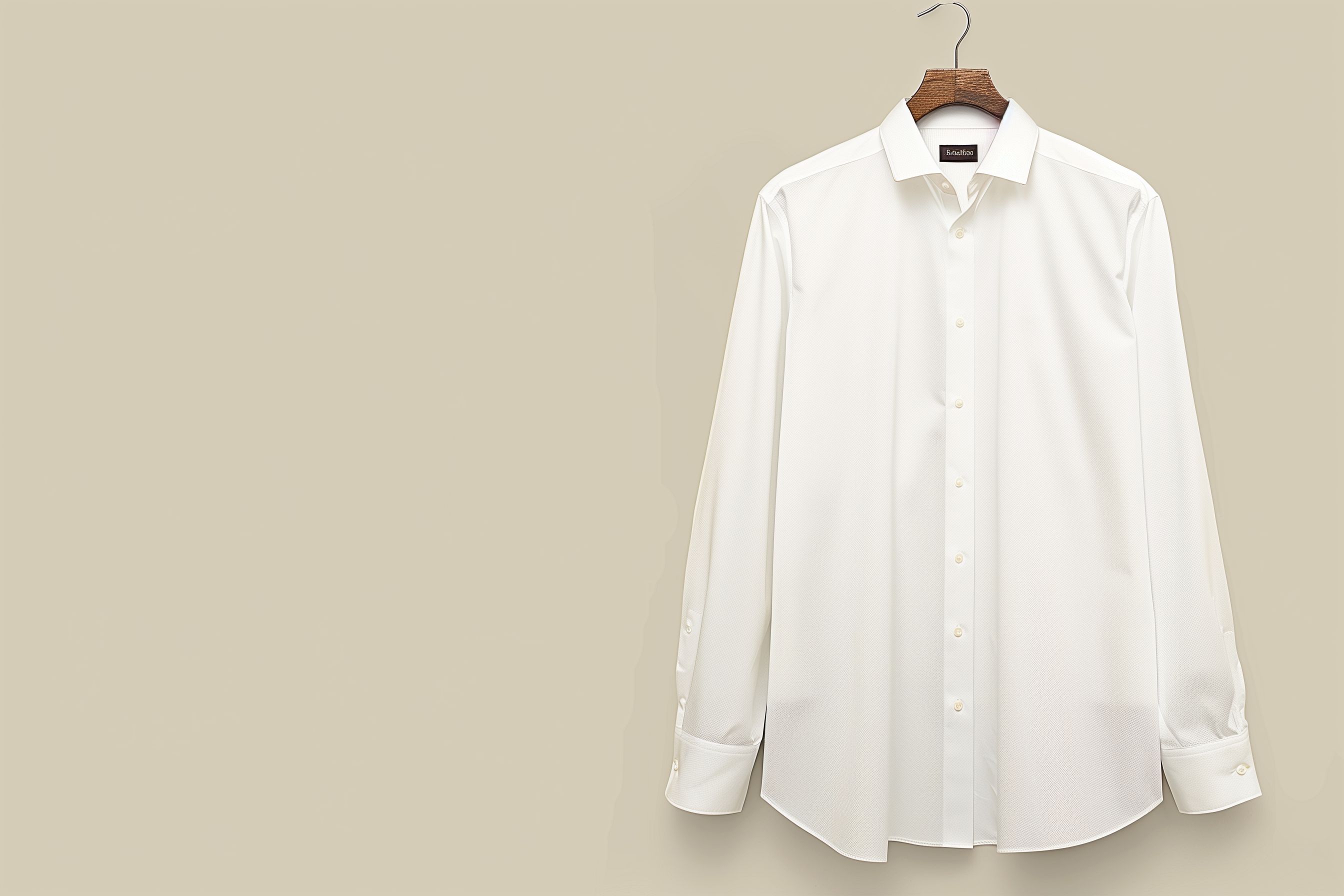 Dieses elegante, weiße Langarmhemd hängt ordentlich an einem traditionellen Holzbügel vor einem neutralen, beigefarbenen Hintergrund. Das hochwertige, glatte Baumwollgewebe vermittelt Professionalität und Sauberkeit. Das Foto eignet sich hervorragend als Stockfoto für Unternehmenswebsites, Büronachrichten, Mode-Editorials oder Social-Media-Kampagnen. In hoher Auflösung verfügbar und unter einer Creative-Commons-Lizenz für den kostenlosen Gebrauch.
