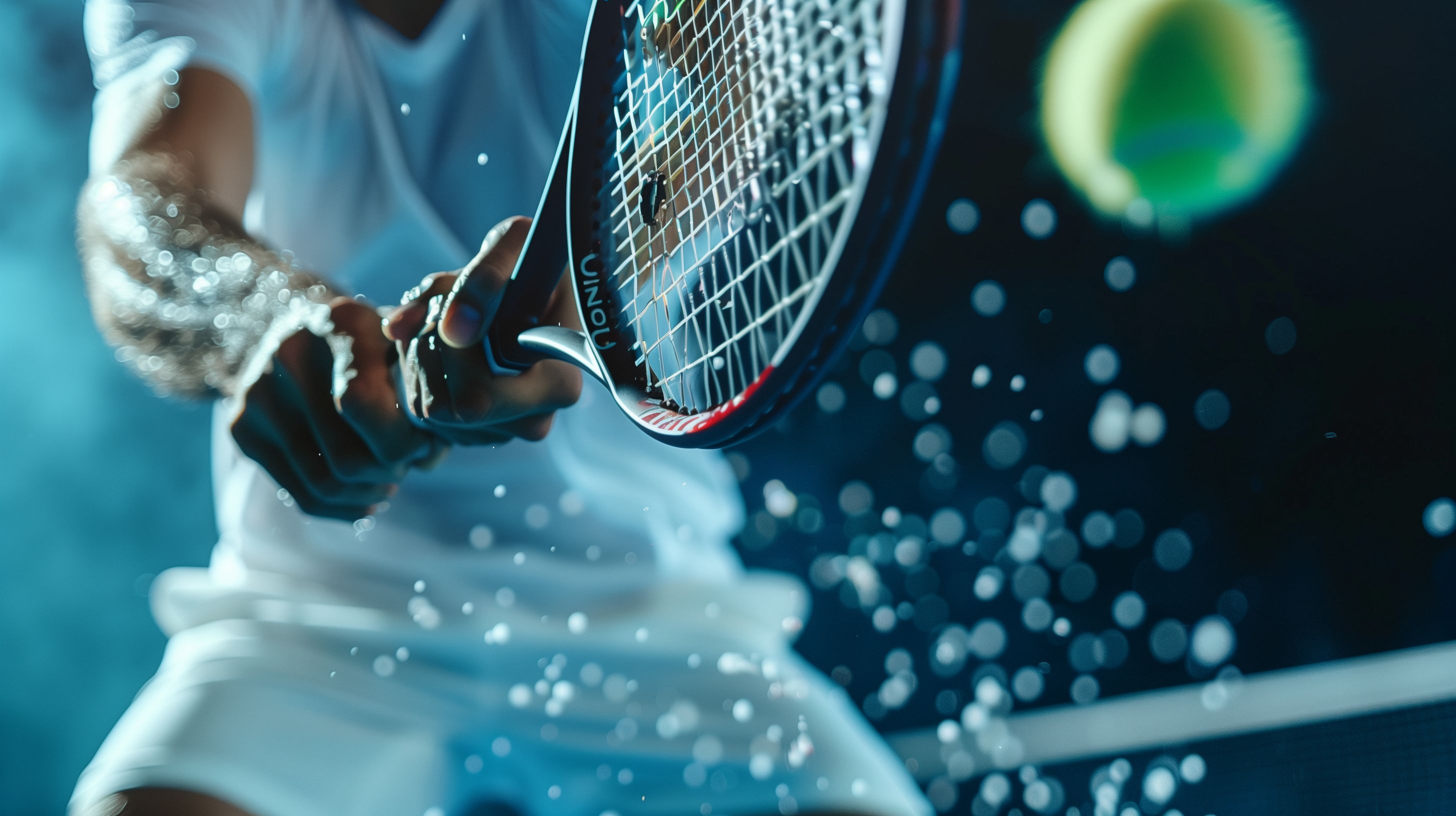 Das Foto zeigt einen Tennisspieler, der gerade einen Rückhandschlag ausführt. Die Kamera hat eine Nahaufnahme gewählt, sodass man die Konzentration und Anspannung des Spielers deutlich erkennen kann. Das Bild ist von Bewegung und Dynamik geprägt - man sieht die Wassertropfen, die vom Schläger abspringen. Die Farbgebung ist kühl und dunkel, was dem Bild eine intensive Stimmung verleiht. Dieses Foto eignet sich hervorragend für die Verwendung in Sportberichterstattungen, Werbematerialien für Tennisvereine oder Trainingsratgebern. Es ist ein hochwertiges, kostenloses Stockfoto in hoher Auflösung, das unter der Creative-Commons-Lizenz verwendet werden kann.