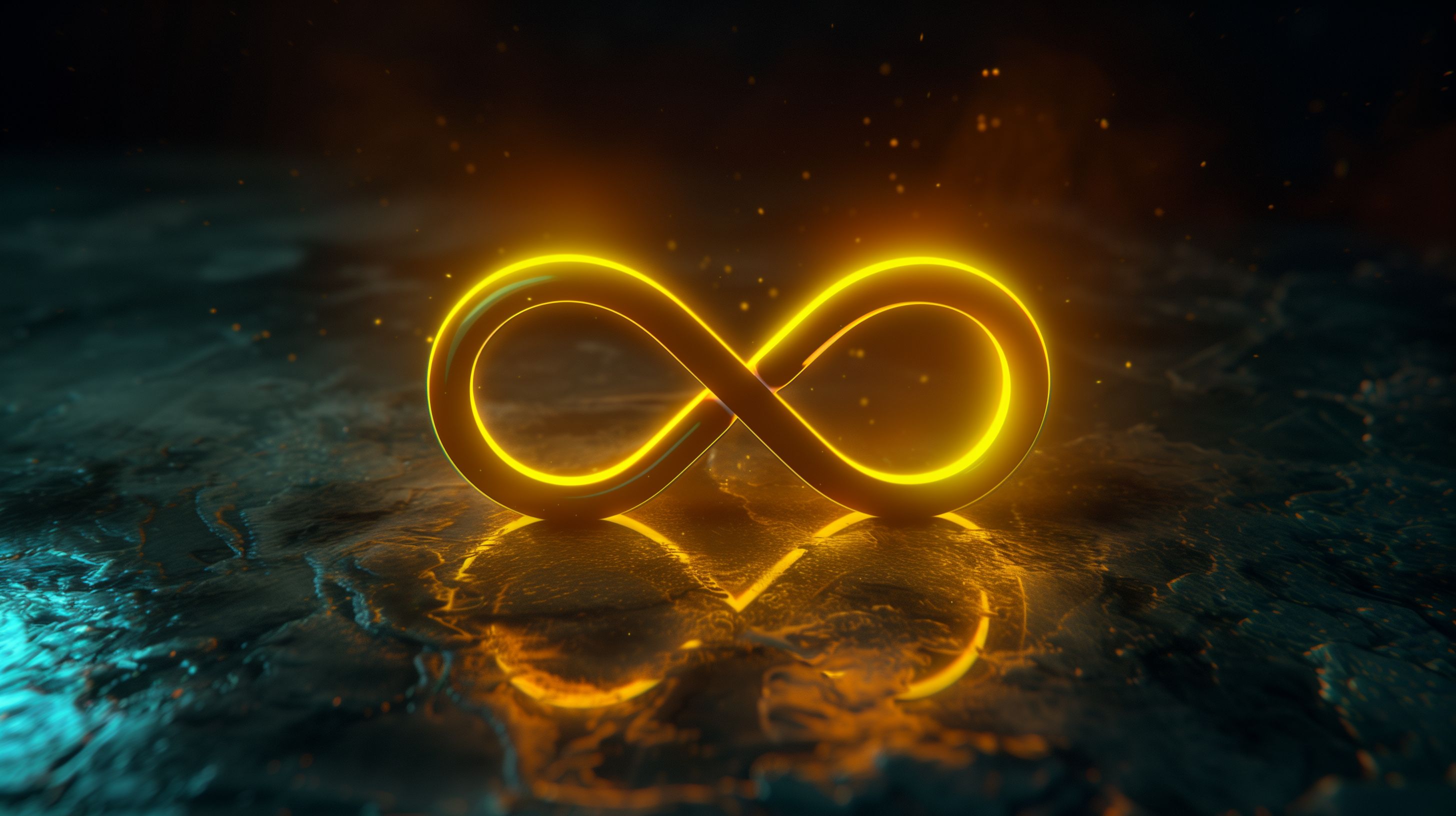 Das Bild zeigt ein glühendes, gelbes Unendlichkeitszeichen, das im dunklen Wasser zu schweben scheint. Es ist von einem mystischen, blau-grünen Licht umgeben und erzeugt einen magischen, stimmungsvollen Eindruck. Die Szene hat eine symbolische, abstrakte Wirkung und könnte für verschiedene Zwecke wie Blogbeiträge, Social-Media-Posts, Newsletter-Grafiken oder Werbematerialien eingesetzt werden. Als kostenloses Stockfoto in hoher Auflösung und unter Creative-Commons-Lizenz eignet es sich perfekt für kreative Projekte und Gestaltungsvorhaben.
