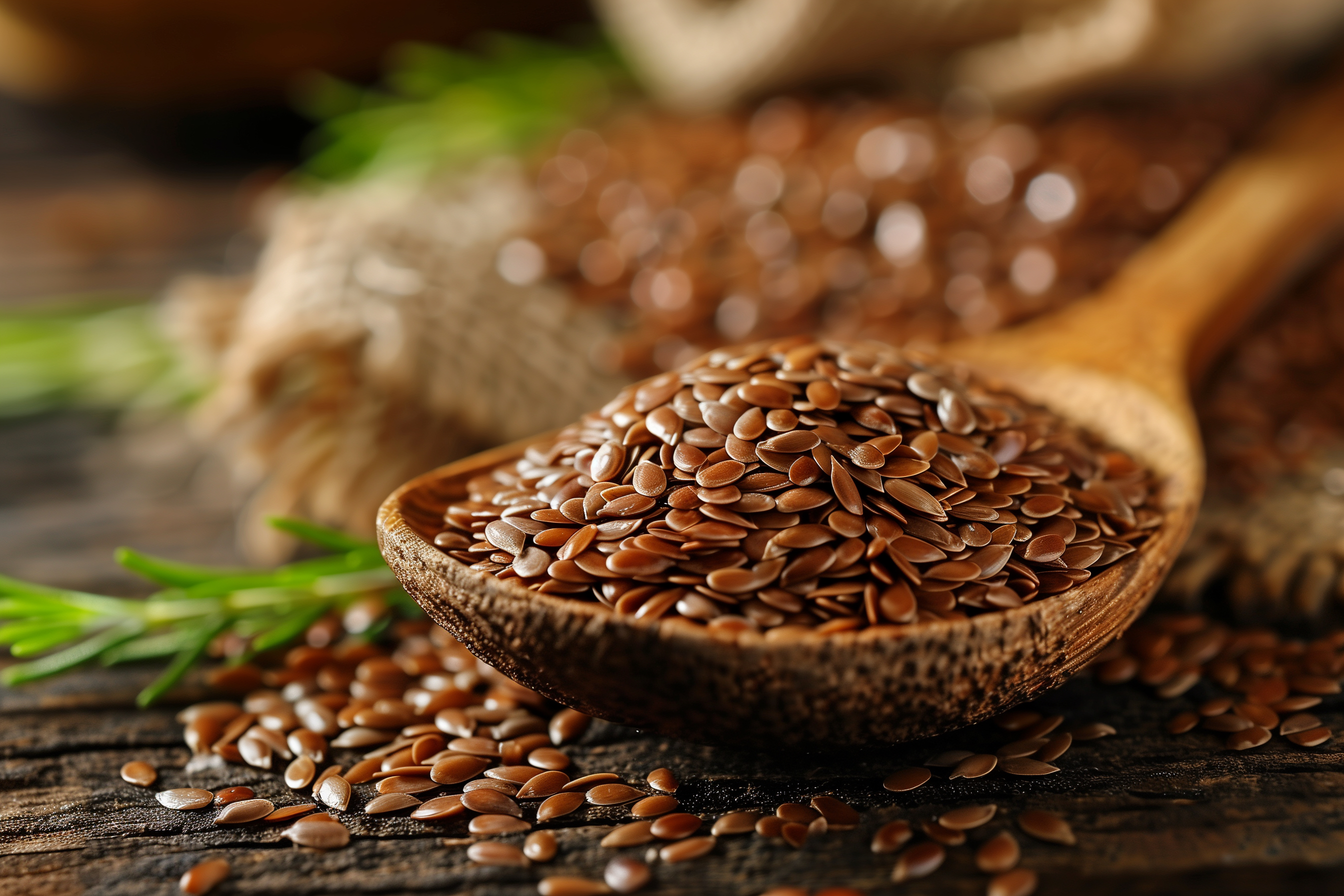 Dieses Bild zeigt eine Nahaufnahme von goldbraunen Leinsamen in einer hölzernen Schale. Die Samen sind perfekt ausgeleuchtet und heben sich vor dem dunklen Hintergrund deutlich ab. Die Schärfe und Detailgenauigkeit des Fotos lassen die Struktur und Beschaffenheit der Samen klar erkennen. Dieses hochwertige Stockfoto eignet sich hervorragend für den Einsatz in Blogs, Newslettern, sozialen Medien oder Werbematerialien rund um das Thema Superfood, gesunde Ernährung, Kochen und Backen. Es ist in hoher Auflösung verfügbar und kann unter der Creative Commons-Lizenz kostenfrei genutzt werden.