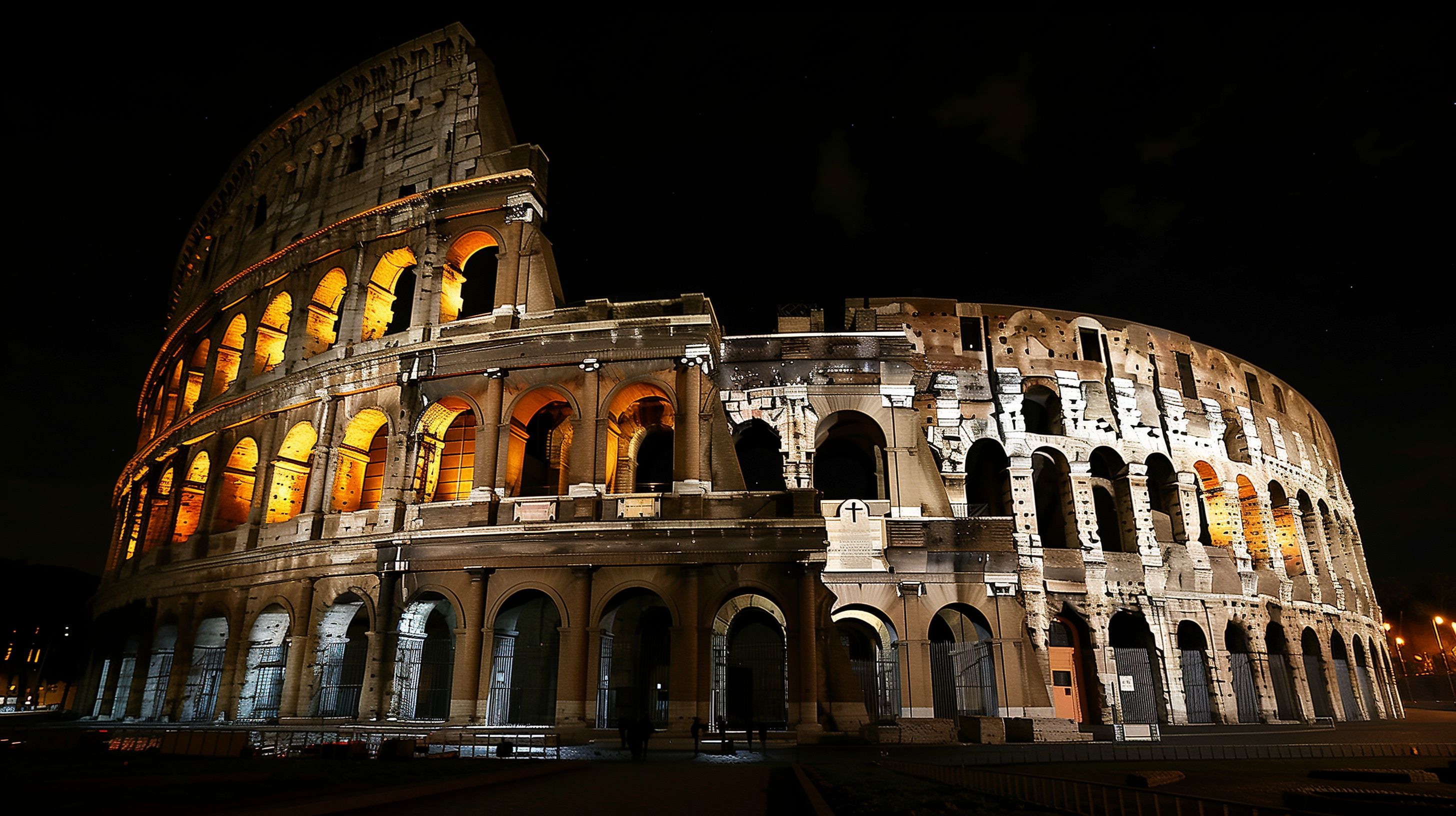 Dieses beeindruckende Foto zeigt das beleuchtete Kolosseum in Rom bei Nacht. Die antike Amphitheater-Architektur ist majestätisch und eindrucksvoll beleuchtet, was eine stimmungsvolle Atmosphäre schafft. Die warmen Farbtöne und die kraftvolle Bauweise verleihen dem historischen Bauwerk eine beeindruckende Präsenz. Dieses Foto eignet sich hervorragend als hochwertiges Stockfoto für Reise-, Tourismus- oder Kulturthemen. Es ist in hoher Auflösung verfügbar und kann unter einer Creative-Commons-Lizenz kostenfrei genutzt werden.