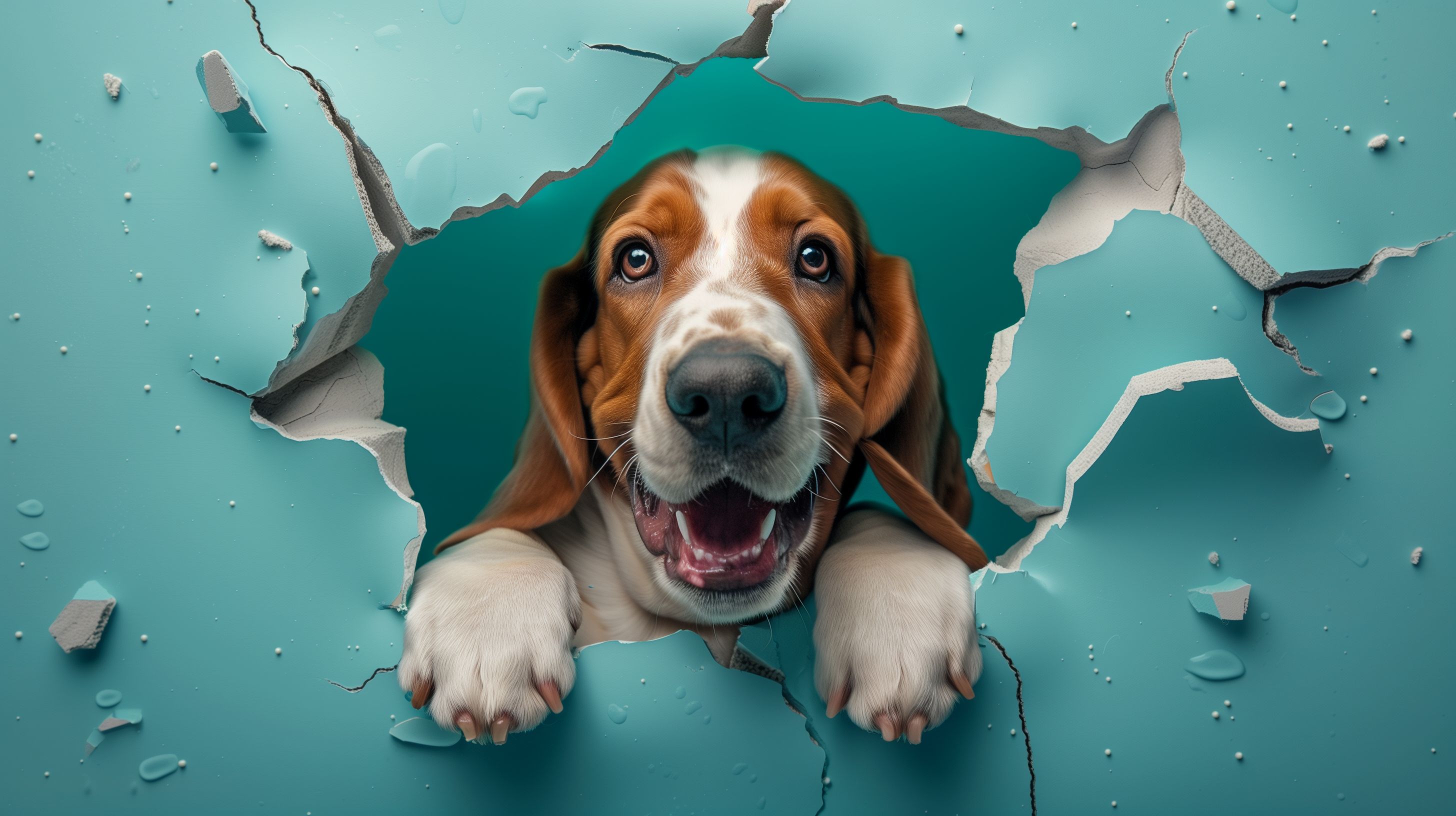 Dieses charmante Stockfoto zeigt einen fröhlichen Basset-Hund, der mit seinem schelmischen Gesichtsausdruck durch ein Loch in einer grünlichen Wand blickt. Der Hund hat einen liebenswürdigen, verspielten Blick und seine herunterhängenden Ohren tragen zu seinem niedlichen Erscheinungsbild bei. Das Bild wäre perfekt für den Einsatz in Werbeanzeigen, Blogbeiträgen, Newsletter-Layouts oder Social-Media-Posts, die eine heitere, freundliche Stimmung vermitteln möchten. Dieses hochauflösende und kostenfrei nutzbare Stockfoto unter Creative-Commons-Lizenz ist ideal für Projekte, die Tiere, Humor oder Freude in den Mittelpunkt stellen wollen.