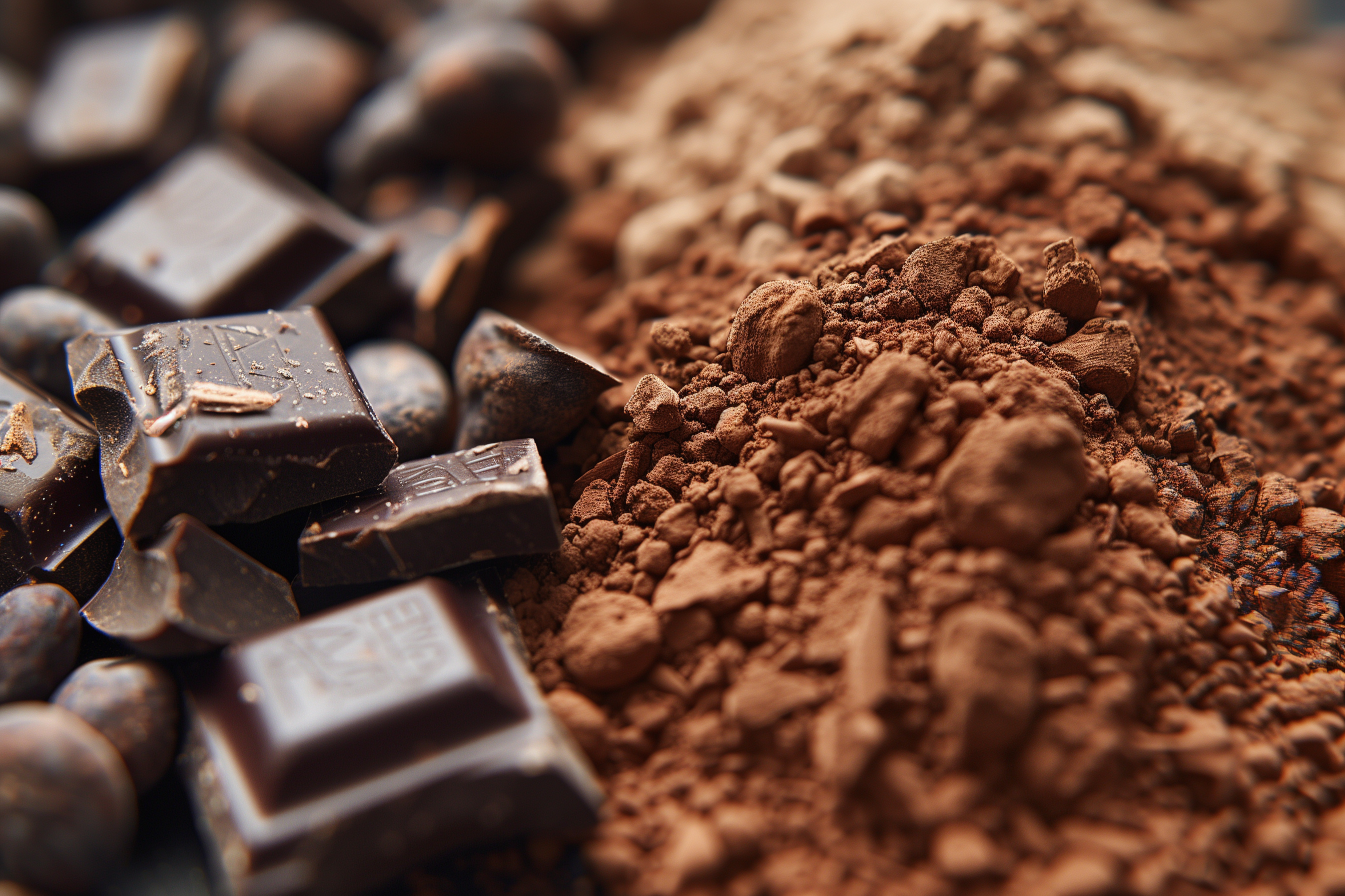 Das Bild zeigt eine Nahaufnahme von dunkler Schokolade und Kakaopulver. Die Oberflächen sind rau und kontrastreich, was den hochwertigen, dunkelbraunen Farbton der Zutaten betont. Die Komposition lenkt die Aufmerksamkeit auf die sinnlichen Texturen und Farben, die für die Herstellung von luxuriösen Schokoladenprodukten charakteristisch sind. Dieses kostenloses Stockfoto in hoher Auflösung kann ideal für Lebensmittel-Blogs, Social-Media-Posts, Werbekampagnen oder andere Projekte verwendet werden, die hochwertiges Schokoladendesign erfordern. Es steht unter der Creative-Commons-Lizenz zur Verfügung.