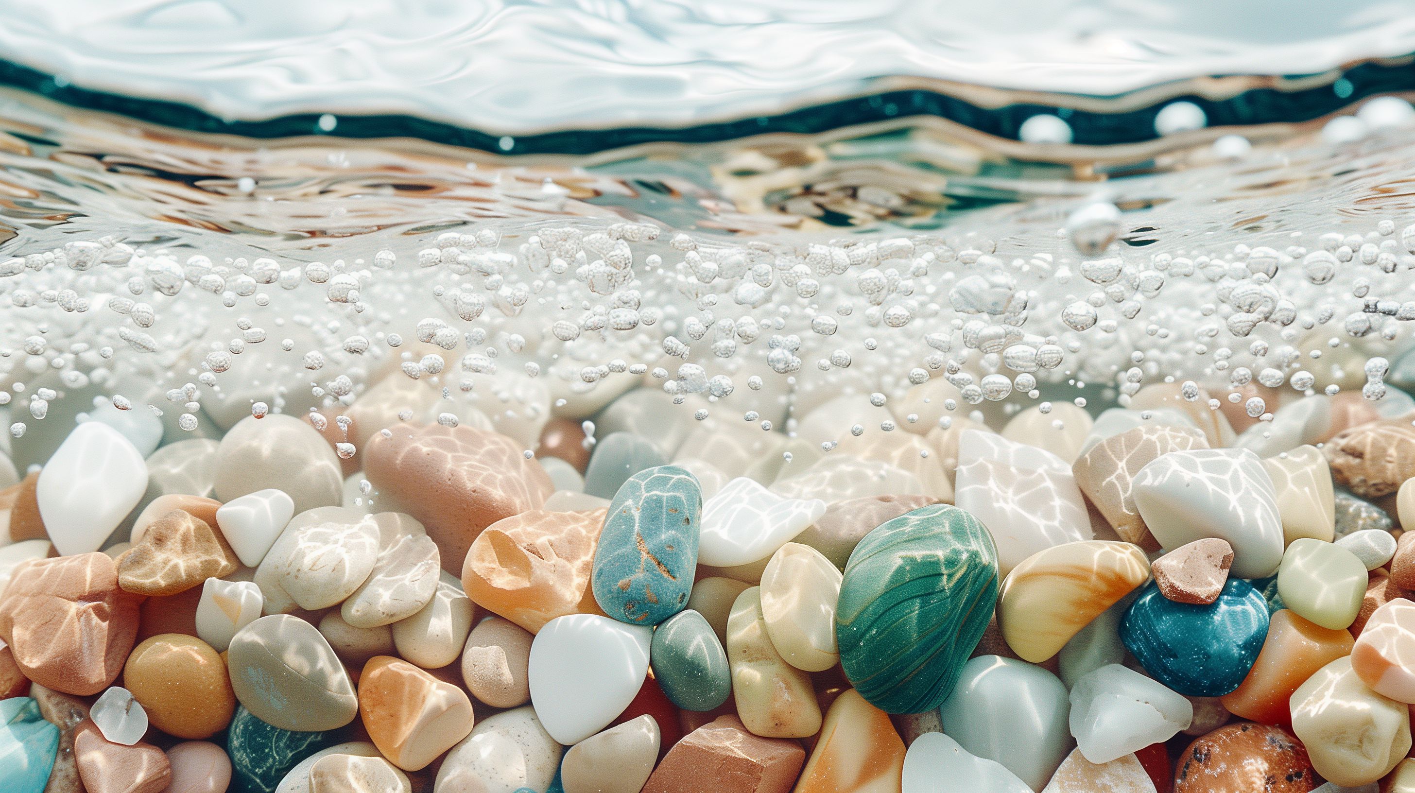 Dieses stimmungsvolle Foto zeigt eine Unterwasseraufnahme von bunten Kieselsteinen in einem kristallklaren Bergwasser. Die runden Steine in pastelligen Farbtönen - von Weiß über Pfirsich bis hin zu Türkis - schaffen eine beruhigende, fast meditative Atmosphäre. Die Perspektive aus der Unterwasserperspektive lässt den Betrachter in diese ruhige Welt eintauchen und die Schönheit der Natur hautnah erleben. Das hochauflösende Stockfoto eignet sich hervorragend als Hintergrundbild für Blogs, Newsletter oder Werbematerialien, um Natürlichkeit, Ruhe und Entspannung zu vermitteln. Es steht unter der Creative-Commons-Lizenz zur kostenlosen Verwendung zur Verfügung.