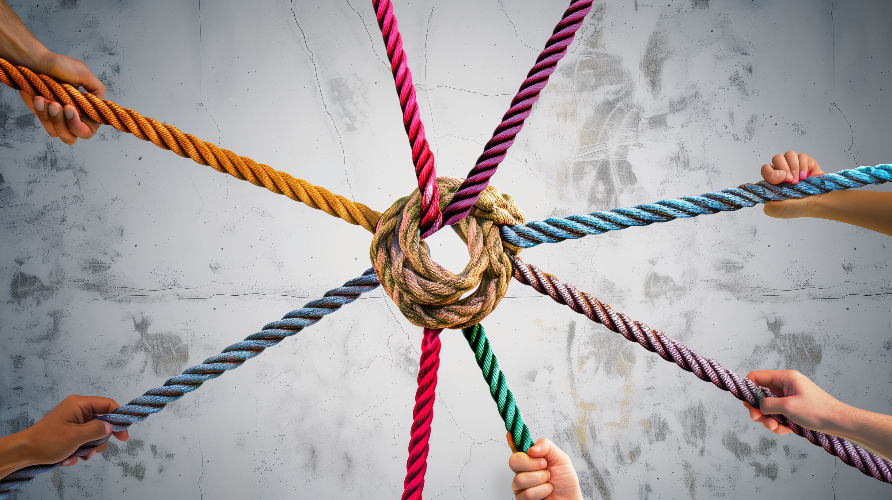 Dieses farbenfrohe Konzeptfoto zeigt die Zusammenarbeit eines Teams, das gemeinsam an einem Ziel arbeitet. Die Darstellung der verschiedenfarbigen Seile, die von mehreren Händen gehalten werden, symbolisiert die Vielfalt und den Zusammenhalt der Gruppe. Das Bild eignet sich hervorragend für den Einsatz in Blogbeiträgen, Werbekampagnen oder Newslettern zum Thema Teamarbeit, Kooperation und Zielerreichung. Als hochauflösendes Stockfoto unter Creative-Commons-Lizenz kann es kostenfrei für diverse Projekte verwendet werden.