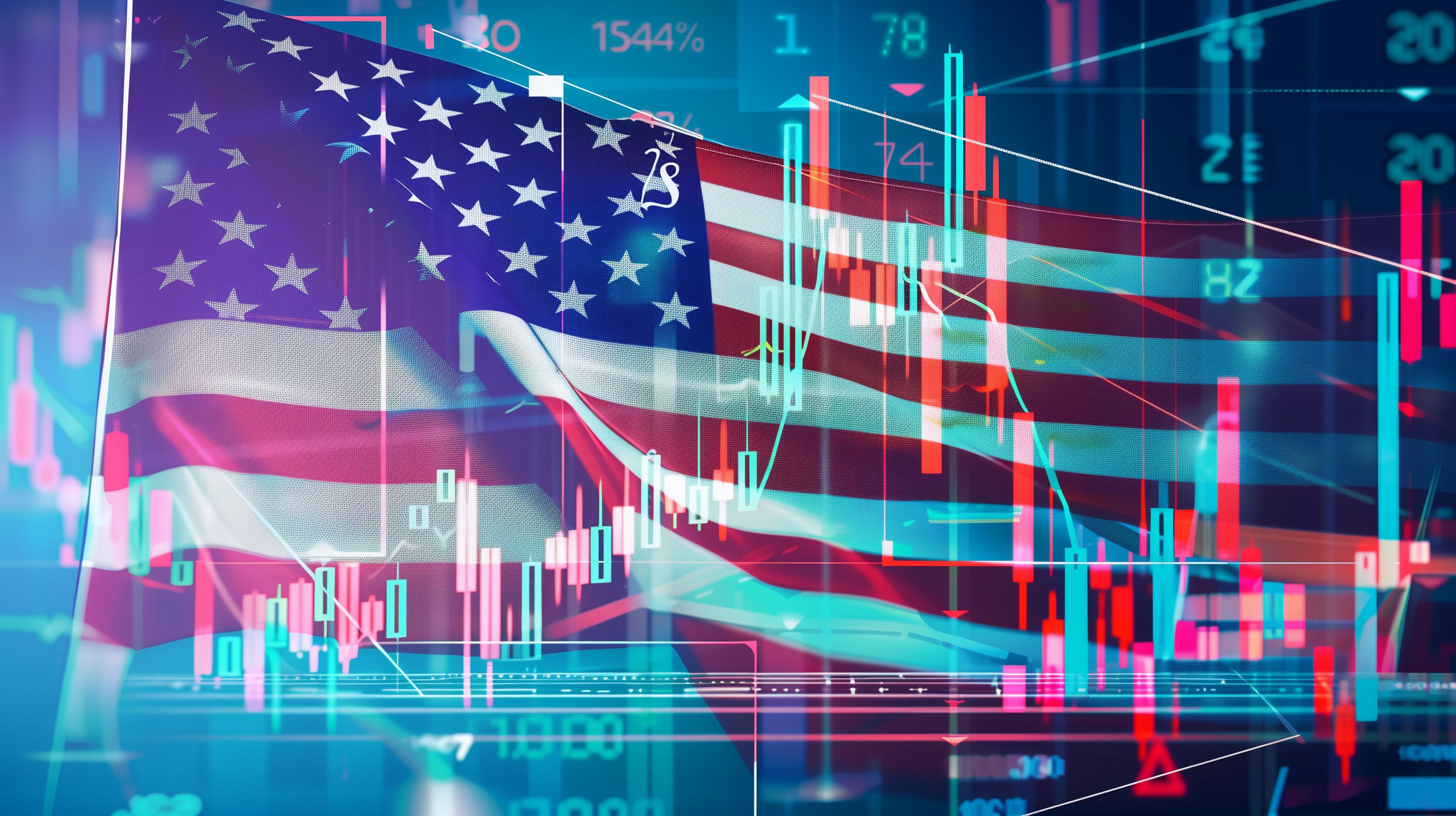Dieses Stockfoto zeigt eine Amerikanische Flagge vor einem Hintergrund von Börsendiagrammen und Finanzdaten. Die rot-weiß-blauen Farben und die Sterne der Flagge sind deutlich zu erkennen, ebenso wie die verschiedenen Linien und Balken der Marktanalyse-Grafiken. Das Bild vermittelt eine Verbindung zwischen amerikanischer Identität und der Welt der Finanzen und Wirtschaft. Es eignet sich perfekt für den Einsatz in Artikeln, Blogbeiträgen oder Social-Media-Posts rund um das Thema Aktien, Investitionen und die Entwicklung der Börse. Das hochauflösende und frei verwendbare Foto bietet eine moderne und aussagekräftige visuelle Darstellung dieses wichtigen wirtschaftlichen Themas.