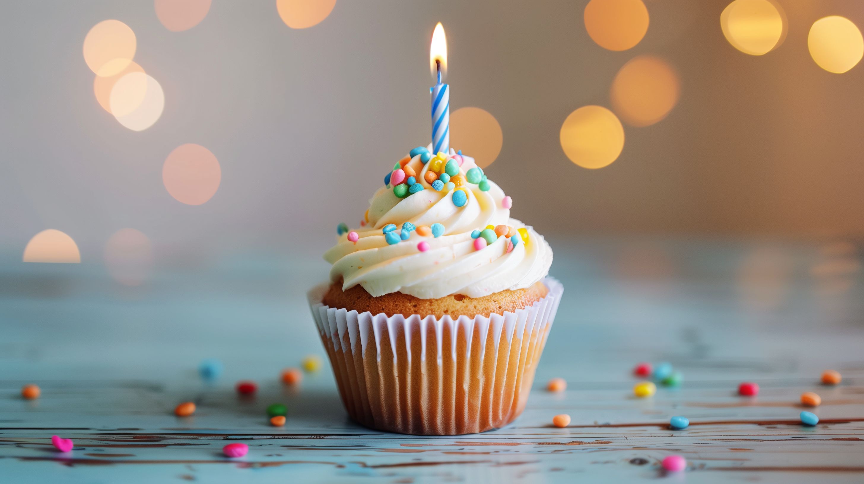 Dieser appetitlich aussehende Geburtstagscupcake ist ein echter Hingucker. Auf einem goldgelben Vanille-Cupcake thront eine üppige, cremige Vanille-Buttercreme, die mit bunten Streuseln und einer blauen Kerze verziert wurde. Die leuchtenden Farben und das festliche Design machen dieses Foto zu einem tollen, vielseitig einsetzbaren Stockfoto. Es eignet sich perfekt für Grußkarten, Einladungen, Blogartikel oder Social-Media-Beiträge rund um Geburtstage, Feiern und süße Leckerchen. Dieses hochauflösende, kostenlose Stockfoto steht unter einer Creative-Commons-Lizenz zur Verfügung.