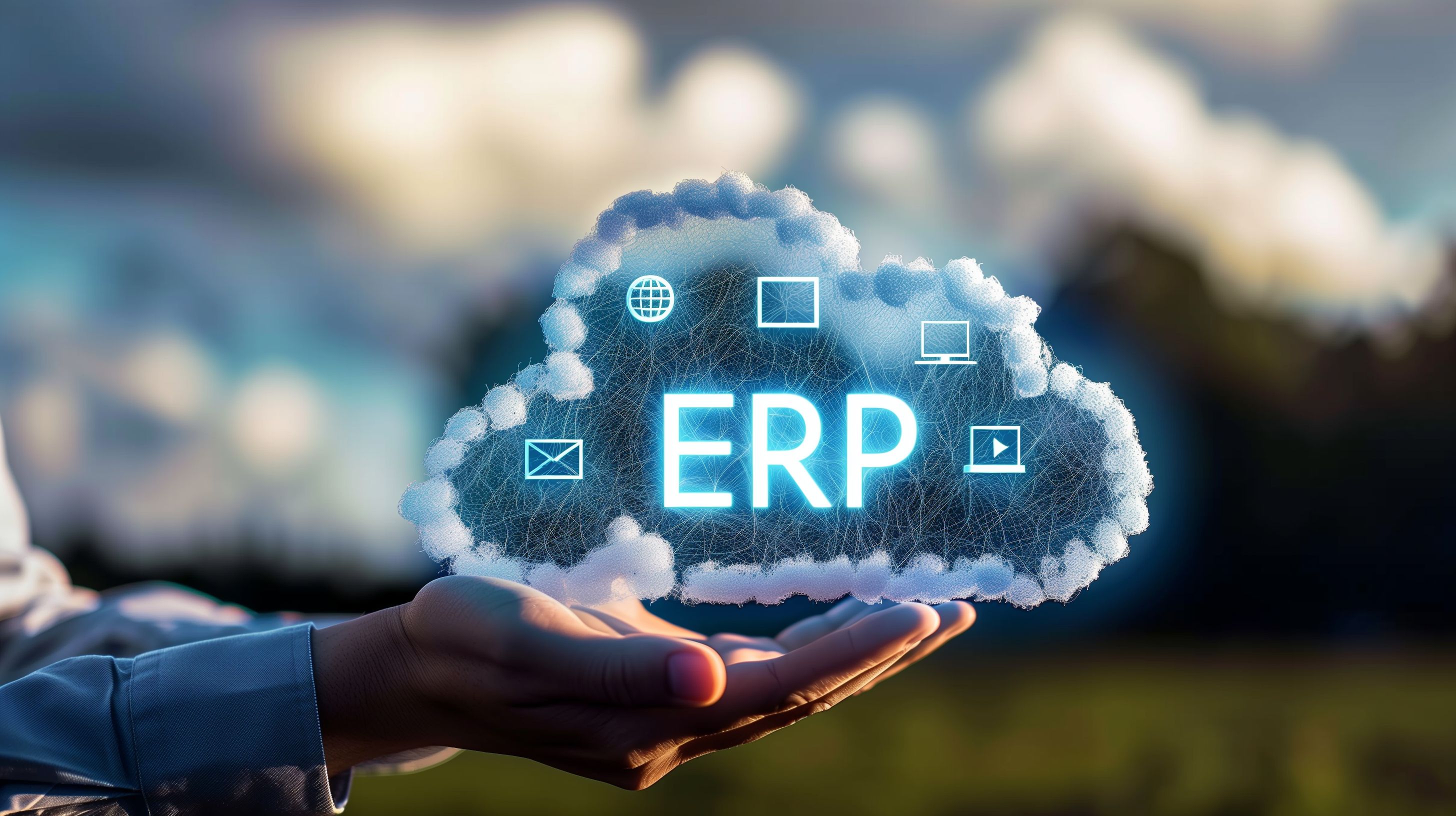 Das Bild zeigt eine Wolke, die das ERP-System (Enterprise Resource Planning) symbolisiert. ERP-Lösungen sind cloudbasierte Geschäftsanwendungen, die Unternehmen dabei unterstützen, ihre Betriebsabläufe ganzheitlich zu optimieren und zu steuern. Vom Rechnungswesen über Logistik bis hin zur Produktion bieten ERP-Systeme eine integrierte Plattform für alle wichtigen Unternehmensfunktionen.