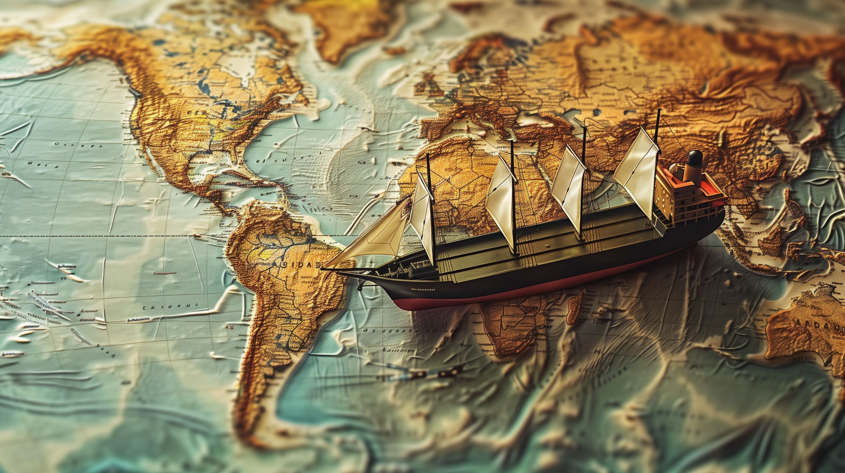 Dieses Stockfoto zeigt eine detaillierte, historische Weltkarte, auf der ein Segelschiff zu sehen ist. Die Karte hat eine leicht verwitterte, vintage Optik mit braunen und grünen Tönen, die dem Bild eine nostalgische Atmosphäre verleihen. Das Schiffsmodell steht sinnbildlich für die Entdeckungsreisen und den internationalen Handel vergangener Epochen. Dieses hochauflösende Foto in hervorragender Qualität lässt sich perfekt für Blogbeiträge, Newsletter, Social-Media-Posts oder Werbematerialien mit Themen rund um Geografie, Seefahrt, Abenteuer oder Reisen einsetzen. Es steht unter einer Creative Commons-Lizenz zur kostenlosen Verwendung zur Verfügung.