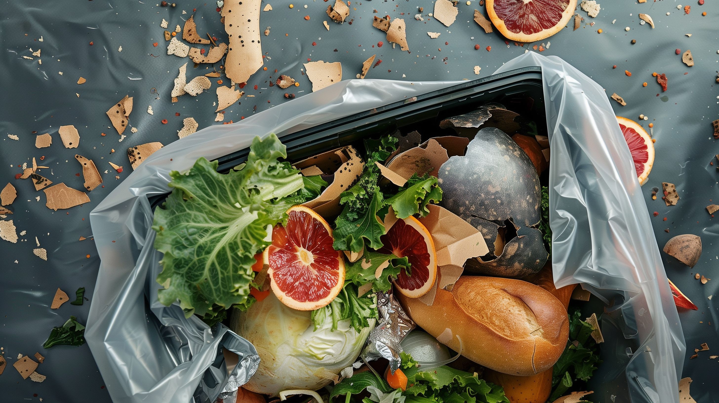 Dieses Stockfoto zeigt eine transparente Plastiktüte, die mit verschiedenen Lebensmittelresten wie Salat, Orangen und anderen Gemüseresten gefüllt ist. Der Hintergrund ist dunkel gehalten, wodurch die Farben der Lebensmittel besonders hervorstechen. Das Bild vermittelt das Thema der Lebensmittelverschwendung auf eine visuelle Art und Weise und kann für Blogs, Newsletter, Social-Media-Beiträge oder Werbekampagnen zum Thema Nachhaltigkeit und Ernährung eingesetzt werden. Dieses hochauflösende Stockfoto ist unter einer Creative-Commons-Lizenz frei verfügbar.