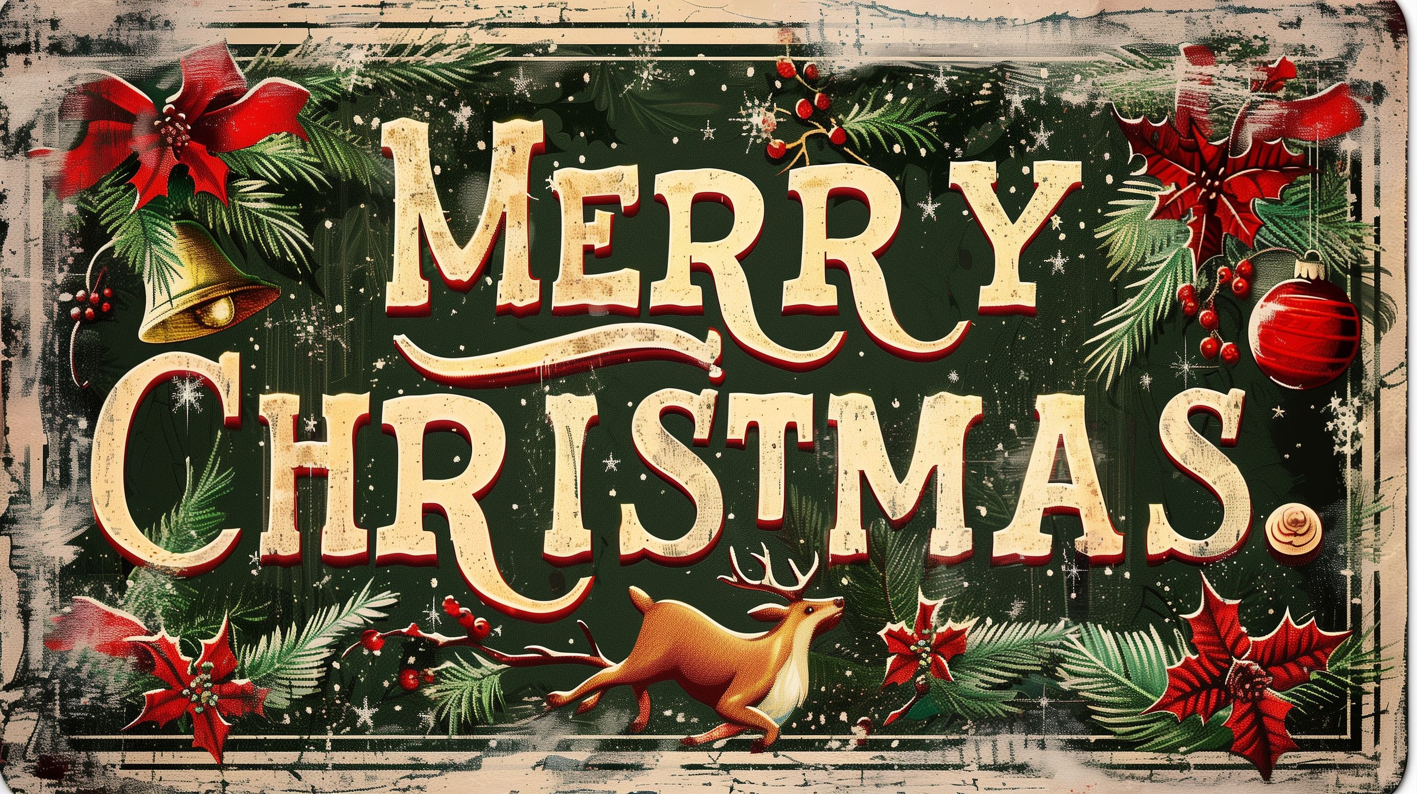 Dieses vintage-inspirierte Weihnachtsgrußschild zeigt eine festliche Komposition aus klassischen Weihnachtselementen wie Tannenzweigen, Sternen, einer Klingel und einem roten Hund. Die Schrift in Retro-Optik verleiht dem Bild einen nostalgischen Charme. Perfekt geeignet für Weihnachtsgrüße, Postkarten, Werbedesigns oder als stimmungsvolle Hintergrundgrafik für Blogs, Newsletter und Social-Media-Beiträge. Dieses hochaufgelöste Stockfoto steht unter einer Creative-Commons-Lizenz zur kostenlosen Verwendung zur Verfügung.