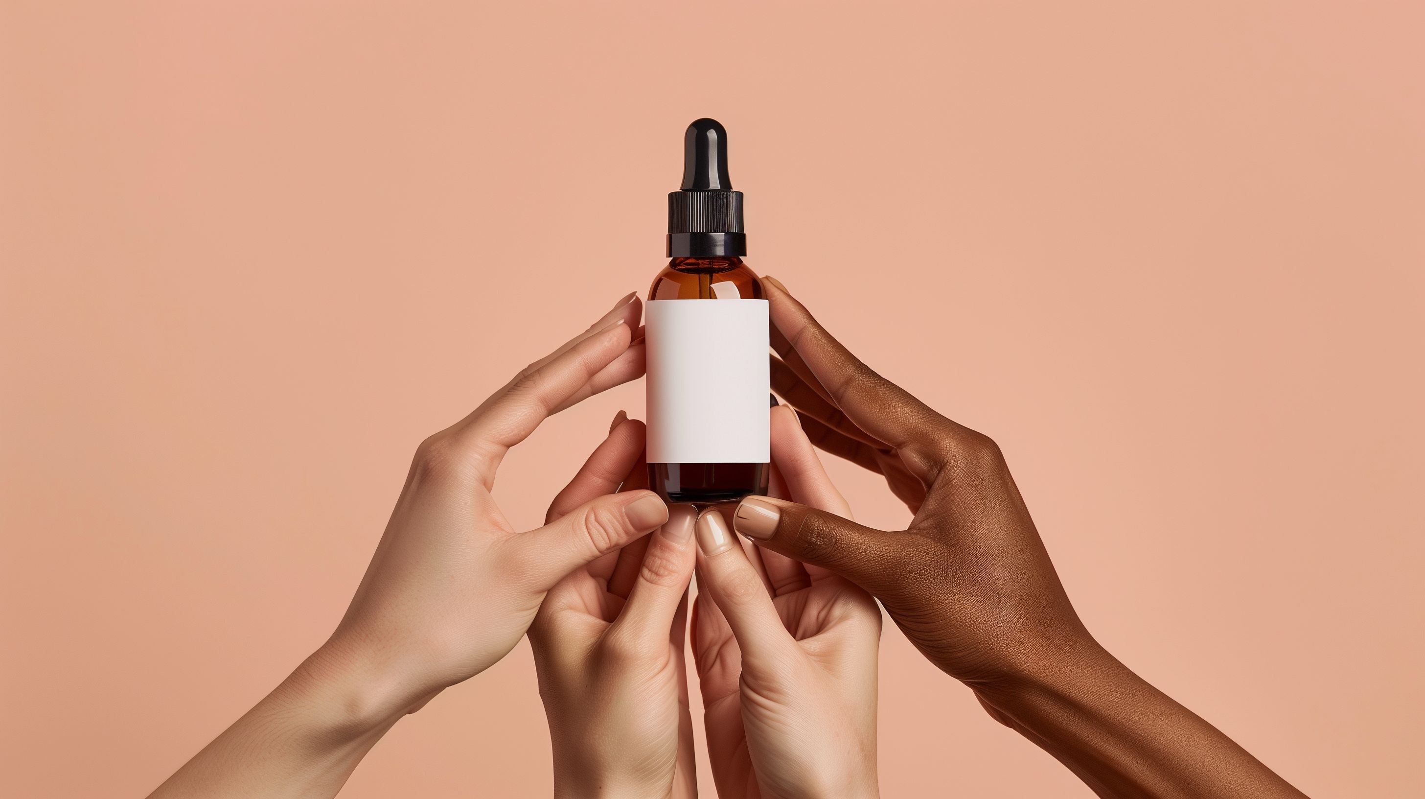 Dieses Bild zeigt zwei Hände, die eine braune Pipettenflasche mit Tinktur oder Serum halten. Der Fokus liegt auf den Händen und der Flasche vor einem einfarbigen, beigen Hintergrund. Diese minimalistische Produktaufnahme eignet sich perfekt für die Verwendung in Blogs, Newslettern, Social-Media-Beiträgen oder Werbematerialien rund um Naturkosmetik, Wellness und Hautpflege. Als kostenloses, hochauflösendes Stockfoto unter der Creative-Commons-Lizenz kann es vielseitig eingesetzt werden.