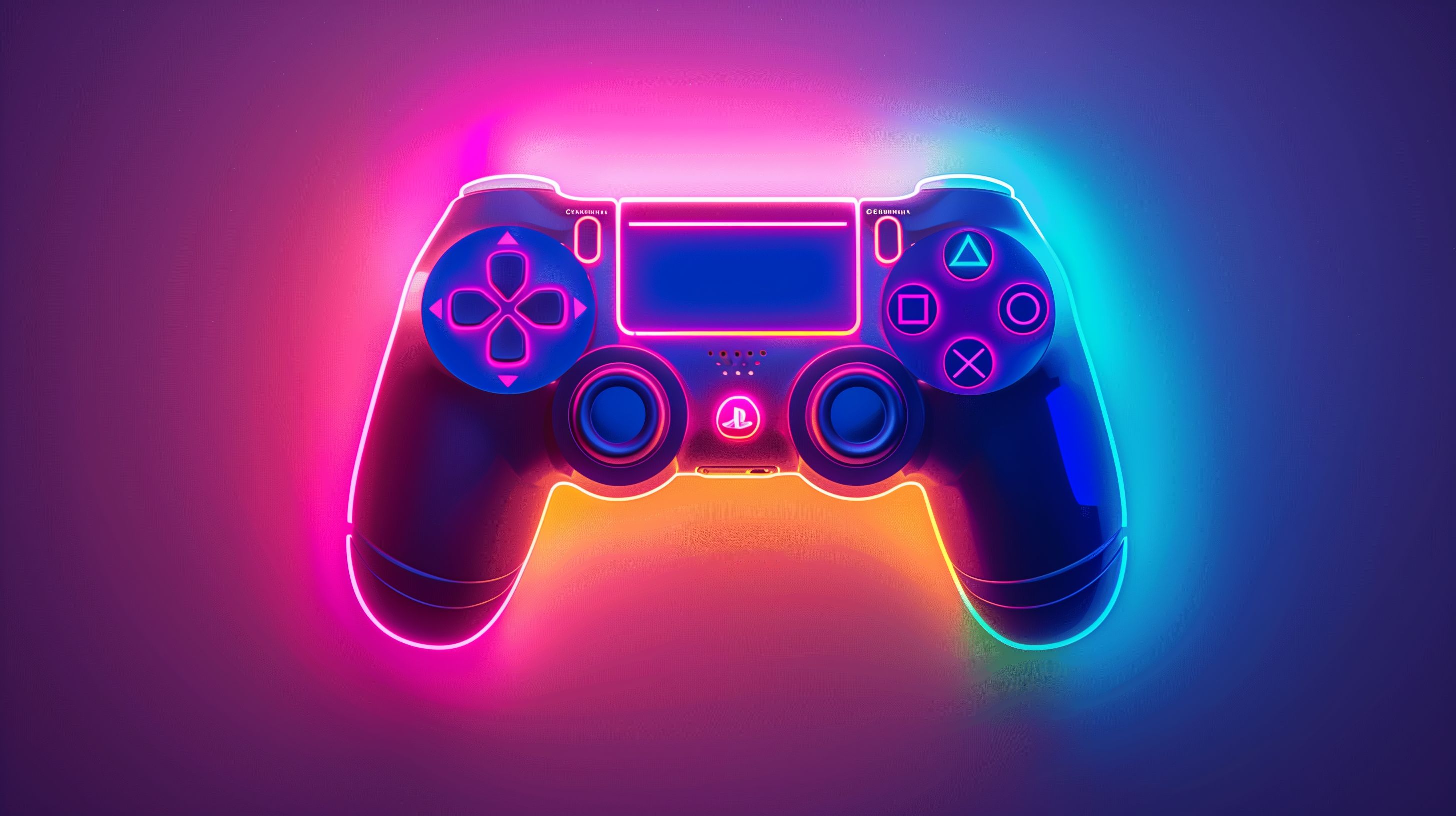 Dieses Bild zeigt einen PlayStation-Controller in strahlendem Neonlicht und Farbverlauf. Der Controller ist vor einem dunklen Hintergrund in Lila, Blau und Rosa dargestellt, was einen modernen und futuristischen Eindruck erweckt. Das Bild hat einen minimalistischen und digitalen Stil, der sich perfekt für Designs, Illustrationen oder Werbematerialien im Bereich Gaming, Technologie und Unterhaltung eignet. Als kostenloses Stockfoto in hoher Auflösung unter der Creative-Commons-Lizenz kann es für verschiedenste Zwecke, wie Blogs, Social-Media-Posts oder Werbekampagnen, verwendet werden.
