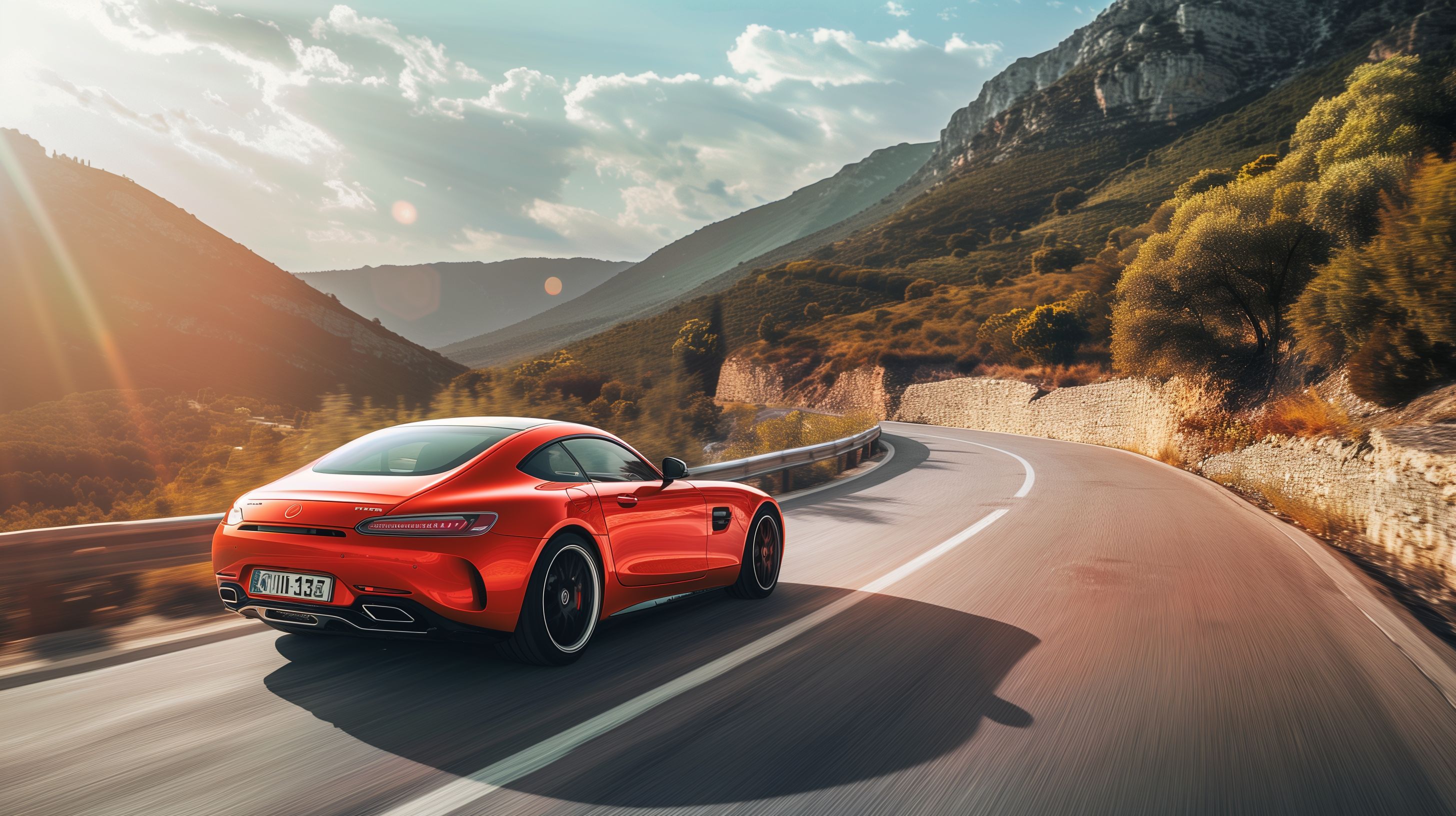 Das Bild zeigt einen roten Sportwagen, der eine kurvige Bergstraße entlangfährt. Im Hintergrund erstrecken sich majestätische Berge in warmer Beleuchtung, die von der Sonne durchflutet werden. Die Komposition lenkt den Blick des Betrachters auf die dynamische Bewegung des Autos, das durch die Kurven schneidet. Das Bild vermittelt ein Gefühl von Freiheit, Abenteuer und der Schönheit der Natur. Dieses hochauflösende Stockfoto eignet sich hervorragend für die Verwendung in Blogs, Newslettern, sozialen Medien oder Werbematerialien zum Thema Reisen, Automobil oder Landschaftsfotografie. Es steht unter einer Creative-Commons-Lizenz kostenlos zum Download zur Verfügung.