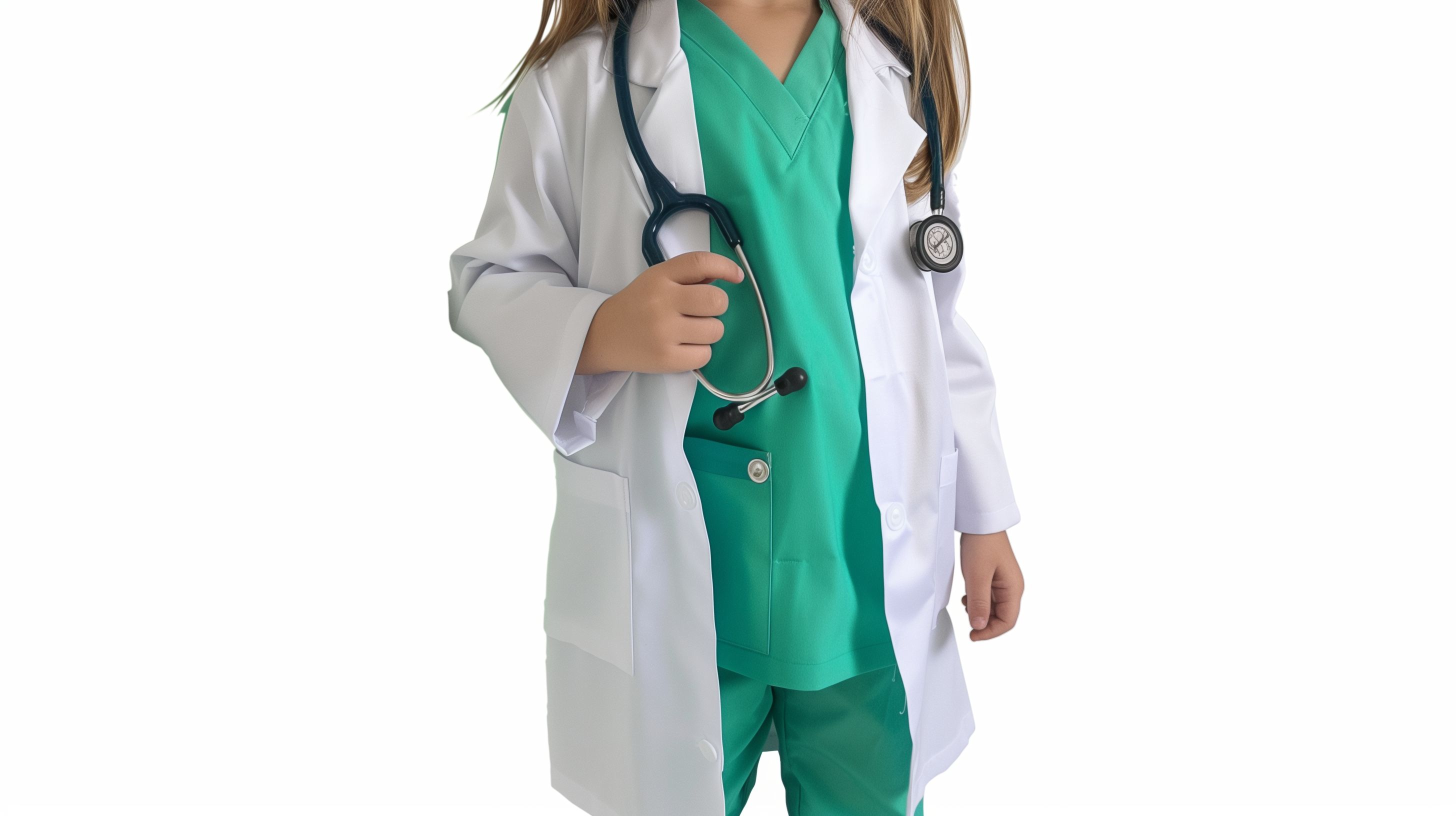 Das Foto zeigt eine junge Frau in einem weißen Arztkittel, die ein Stethoskop in der Hand hält. Sie trägt grüne Kleidung darunter, vermutlich eine medizinische Uniform. Das Bild vermittelt den Eindruck eines Zukunftsträumens oder eines Rollenspiels, bei dem das Kind die Rolle einer Ärztin übernimmt. Das Foto eignet sich gut für Beiträge in Blogs, Newslettern oder Social-Media-Kanälen zum Thema Medizin, Gesundheit oder Berufsausbildung. Als kostenloses Stockfoto in hoher Auflösung und unter Creative-Commons-Lizenz ist es für vielfältige Verwendungen geeignet.
