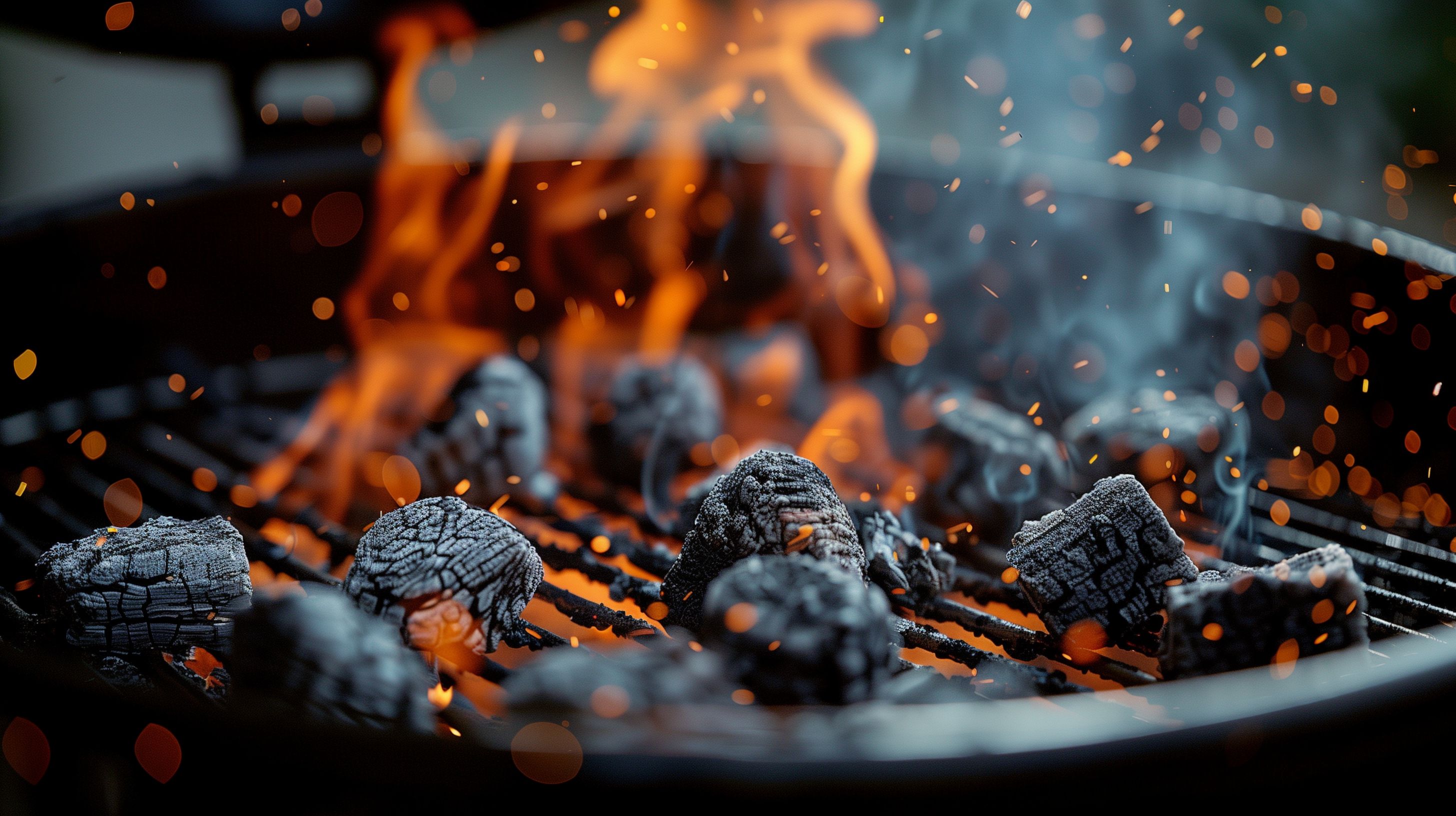 Das Bild zeigt eine Nahaufnahme von glühender Holzkohle auf einem Grillrost. Die leuchtenden Flammen und Funken erzeugen eine warme, atmosphärische Stimmung, die perfekt für einen gemütlichen Grillabend im Freien geeignet ist. Die Kohle ist dunkel und zerklüftet, was auf eine intensive Hitzeentwicklung schließen lässt. Dieses kostenlose Stockfoto in hoher Auflösung lässt sich ideal für Blogbeiträge, Newsletter-Designs oder Werbematerial rund um das Thema Grillen und Outdoor-Küche verwenden. Es steht unter der Creative Commons-Lizenz zur freien Nutzung zur Verfügung.