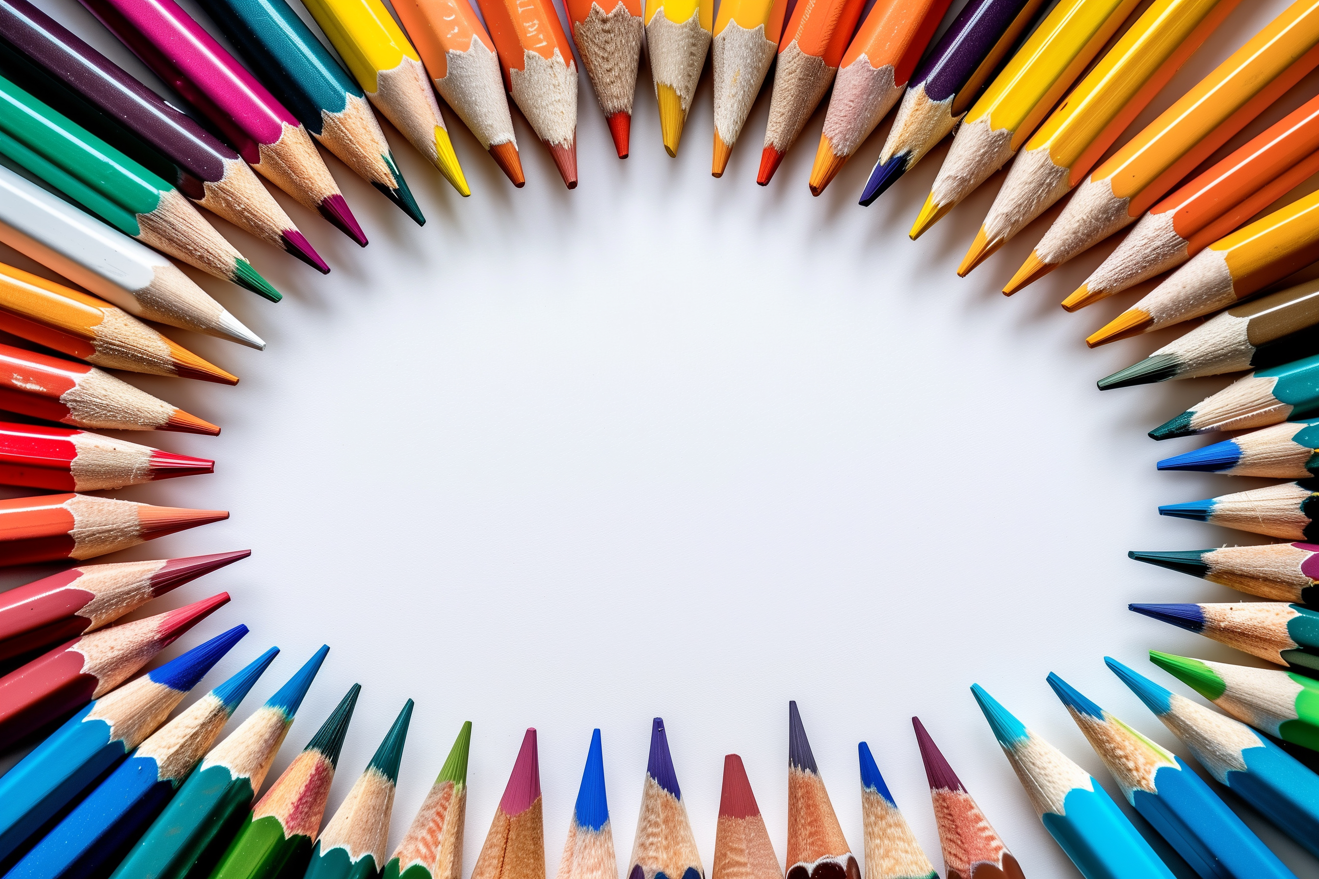 Das Bild zeigt einen Kreis aus bunten, spitzwinkligen Farbstiften, die in verschiedenen Formen und Farben angeordnet sind. Die Stifte sind auf einem weißen Hintergrund platziert, was den Fokus auf die Farbpalette lenkt und einen klaren, minimalistischen Eindruck vermittelt. Diese Aufnahme wäre ideal für den Einsatz in Blogs, Newslettern, Social-Media-Kanälen oder Werbematerialien, die Kreativität, Gestaltung oder Farben thematisieren. Als kostenloses Stockfoto in hoher Auflösung und unter einer Creative-Commons-Lizenz lässt es sich vielfältig und flexibel nutzen.