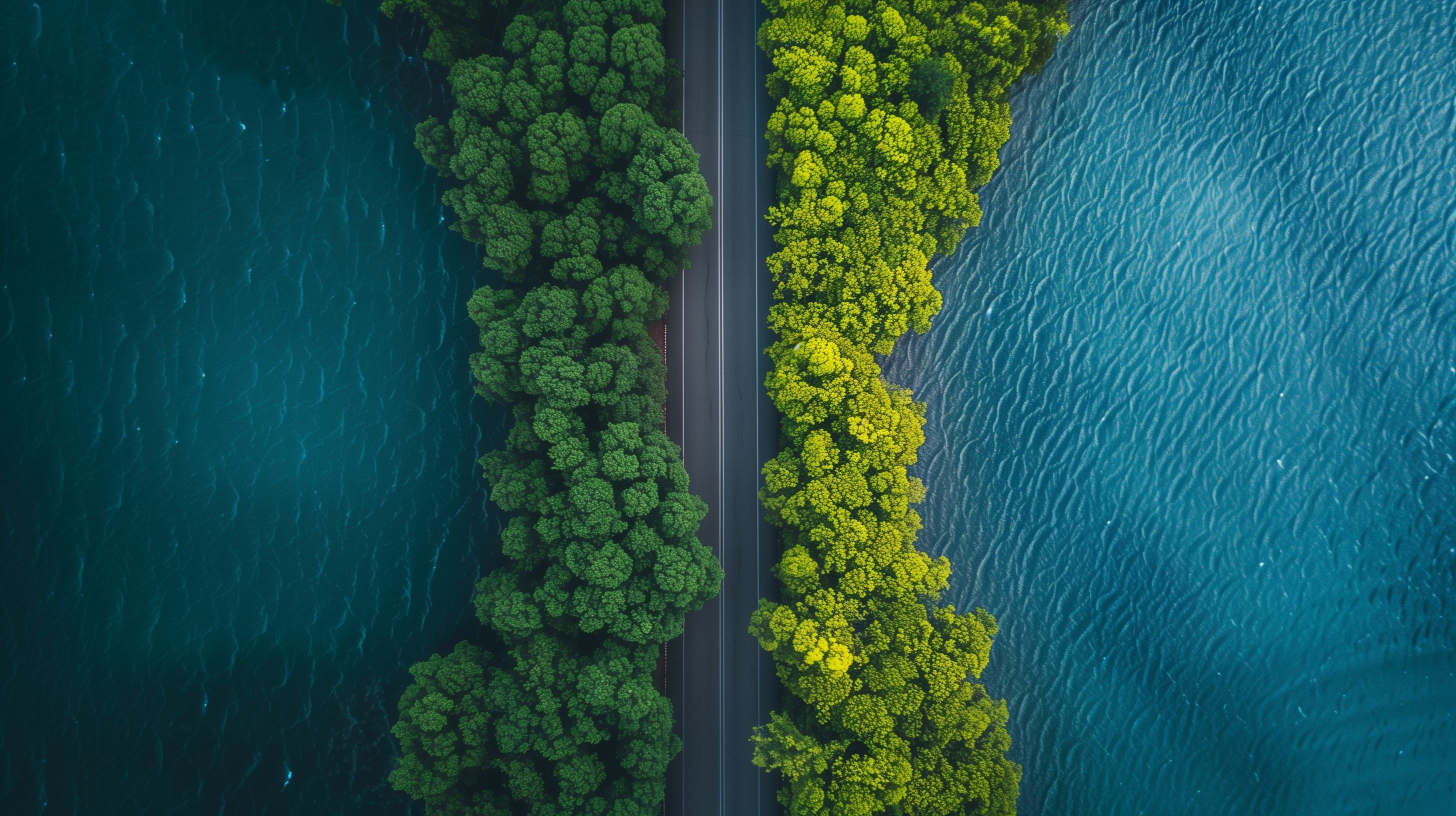 Diese eindrucksvolle Luftaufnahme zeigt eine Straße, die sich durch eine wunderschöne, naturbelassene Landschaft schlängelt. Auf der linken Seite erstreckt sich ein dichter, üppig grüner Wald, während auf der rechten Seite ein klarer, türkisfarbener See glitzert. Die Komposition und die Farbgebung schaffen ein harmonisches, beruhigendes Gesamtbild. Dieses hochauflösende Stockfoto eignet sich hervorragend für die Verwendung in Blogs, Newslettern, sozialen Medien oder Werbematerialien, wo es eine natürliche, entspannende Atmosphäre vermitteln kann. Es steht unter der Creative-Commons-Lizenz und kann kostenfrei genutzt werden.