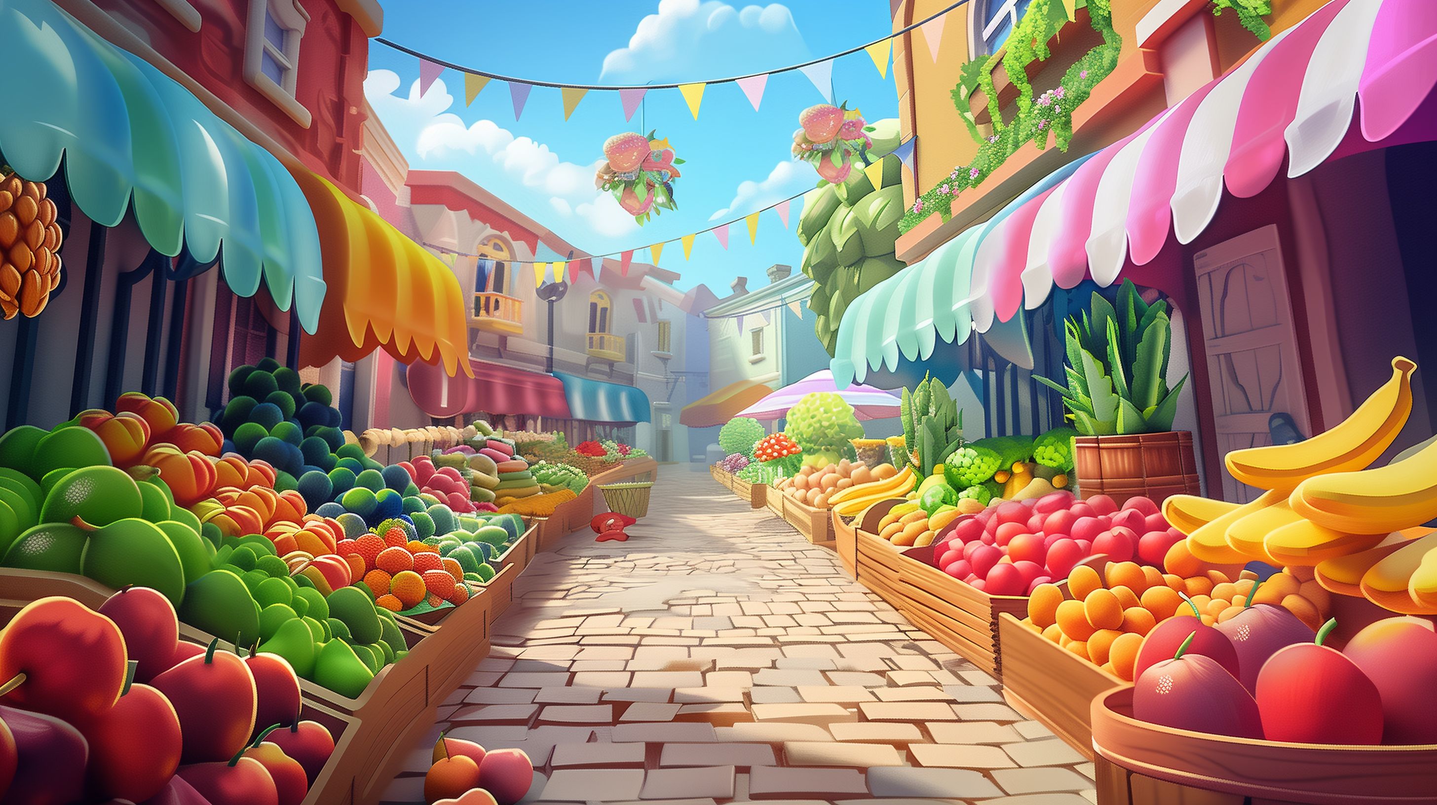 Dieses farbenfrohe Stockfoto zeigt einen lebendigen Obstmarkt in einer pittoresken Altstadt. Die Straße ist gesäumt von bunten Verkaufsständen, die mit saisonalen Früchten und Gemüsesorten locken. In der Mitte des Bildausschnitts erstreckt sich ein gewundener Pflasterweg, der zur Entdeckungstour durch die kulinarische Vielfalt einlädt. Geschmückt mit Girlanden und Dekorationen, verströmt die Szenerie eine sommerliche Atmosphäre voller Lebendigkeit und Genuss. Dieses hochauflösende Bild eignet sich hervorragend für Verwendungen in Blogs, Newslettern oder Werbekampagnen rund um das Thema Lebensmittel, regionale Produkte oder urbane Lebensfreude. Als kostenloses Stockfoto unter Creative-Commons-Lizenz können Sie es frei nutzen.