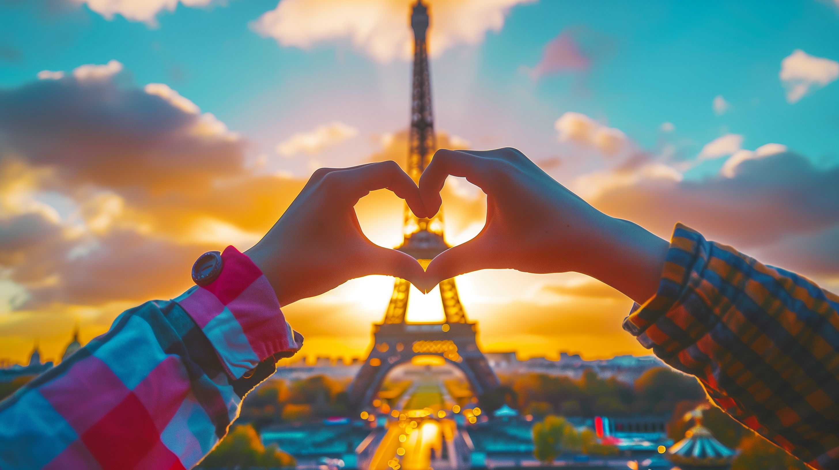 Dieses wunderschöne Foto zeigt ein romantisches Pärchen, das den Sonnenuntergang am Eiffelturm in Paris genießt. Die Silhouetten der beiden Personen formen ein Herz vor dem ikonischen Pariser Wahrzeichen, während der Himmel in einem warmen, goldenen Licht erstrahlt. Die Komposition und Farbgebung vermitteln eine stimmungsvolle, nostalgische Atmosphäre und lassen den Betrachter förmlich die Romantik und Magie des Moments spüren. Dieses kostenlose Stockfoto in hoher Auflösung eignet sich hervorragend für den Einsatz in Blogs, Newslettern, Social-Media-Beiträgen oder Werbekampagnen, die ein romantisches, reisefreudiges Publikum ansprechen möchten. Die Lizenz unter Creative Commons erlaubt eine vielfältige Nutzung.