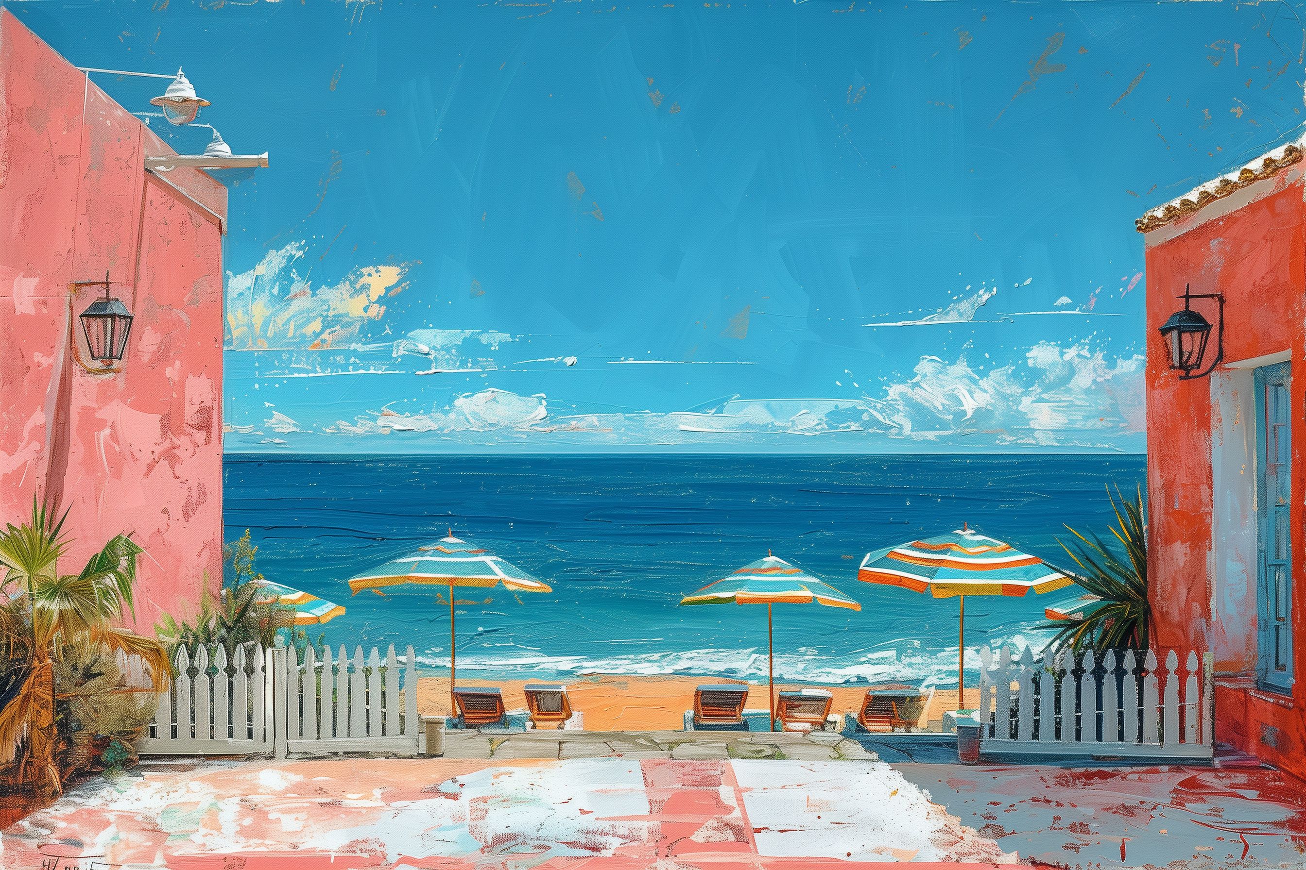 Dieses malerische Foto zeigt eine idyllische Strandszene in einer mediterranen Umgebung. Im Vordergrund sieht man bunte Sonnenschirme und Strandstühle, die zum Entspannen und Genießen des Meeres einladen. Im Hintergrund erstreckt sich die tiefblaue Weite des Ozeans, vor einer Kulisse von roten Gebäudefassaden und Palmen. Die harmonische Farbgestaltung und die einladende Atmosphäre machen dieses Bild zu einem perfekten Motiv für Reisewerbung, Tourismuskampagnen oder die Verwendung in Blogs und Newslettern rund um das Thema Sommerurlaub. Als kostenloses Stockfoto in hoher Auflösung und unter Creative-Commons-Lizenz eignet es sich ideal für eine Vielzahl von Einsatzzwecken.