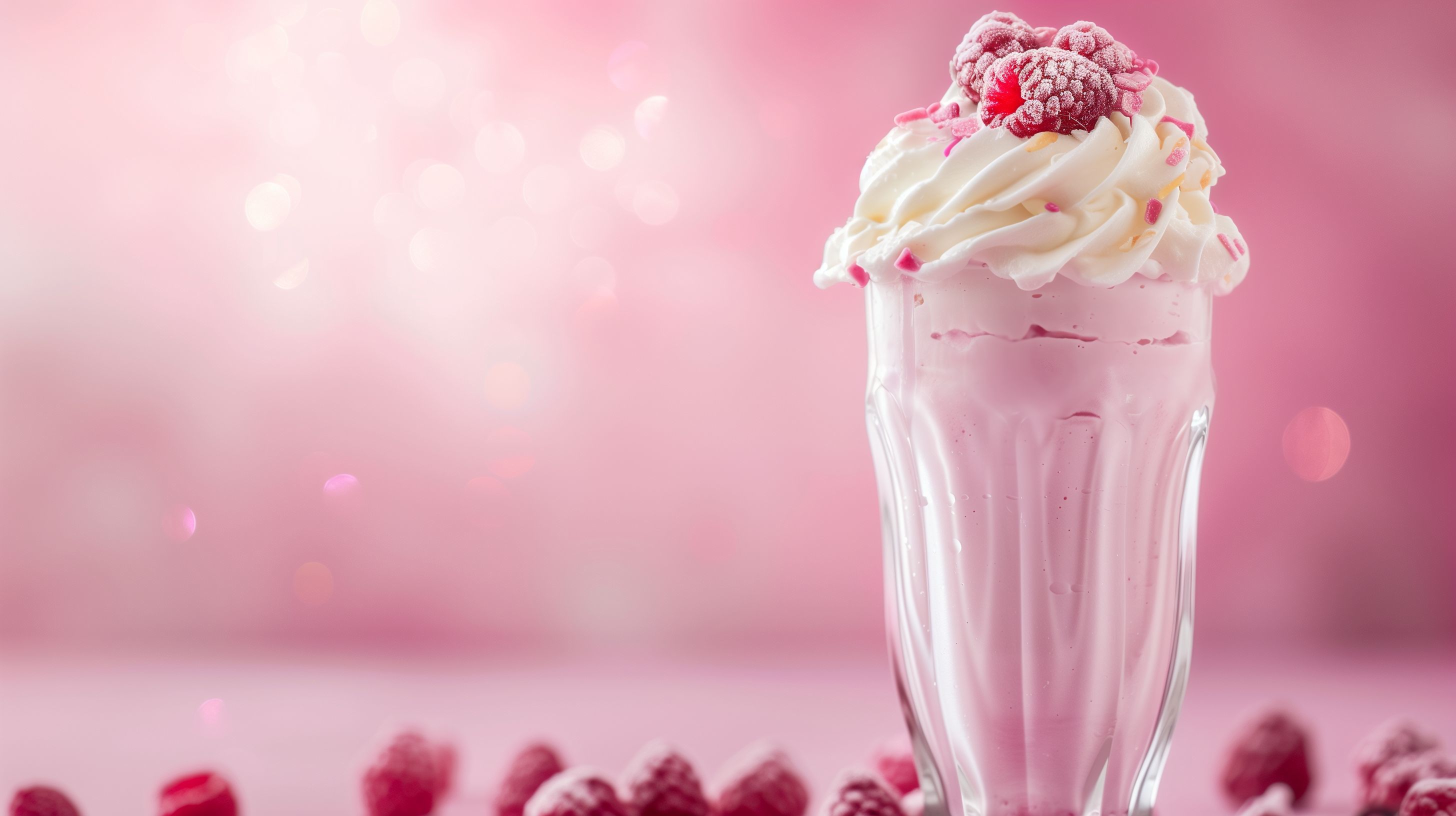 Das Foto zeigt einen verlockenden Erdbeer-Milchshake, der in einem hohen Glas serviert wird. Der Shake ist mit einer üppigen Portion Sahne und frischen Beeren wie Himbeeren und Brombeeren garniert, die ihm ein sommerlich-frisches Aussehen verleihen. Der rosa Farbton des Getränks, der durch die Erdbeeren entsteht, harmoniert perfekt mit dem weißen Schaum der Sahne. Dieser Milchshake wäre ein idealer Begleiter für einen heißen Sommertag oder als süßer Genuss nach einem Abendessen. Das hochwertige Stockfoto ist in hoher Auflösung und unter einer Creative-Commons-Lizenz verfügbar.